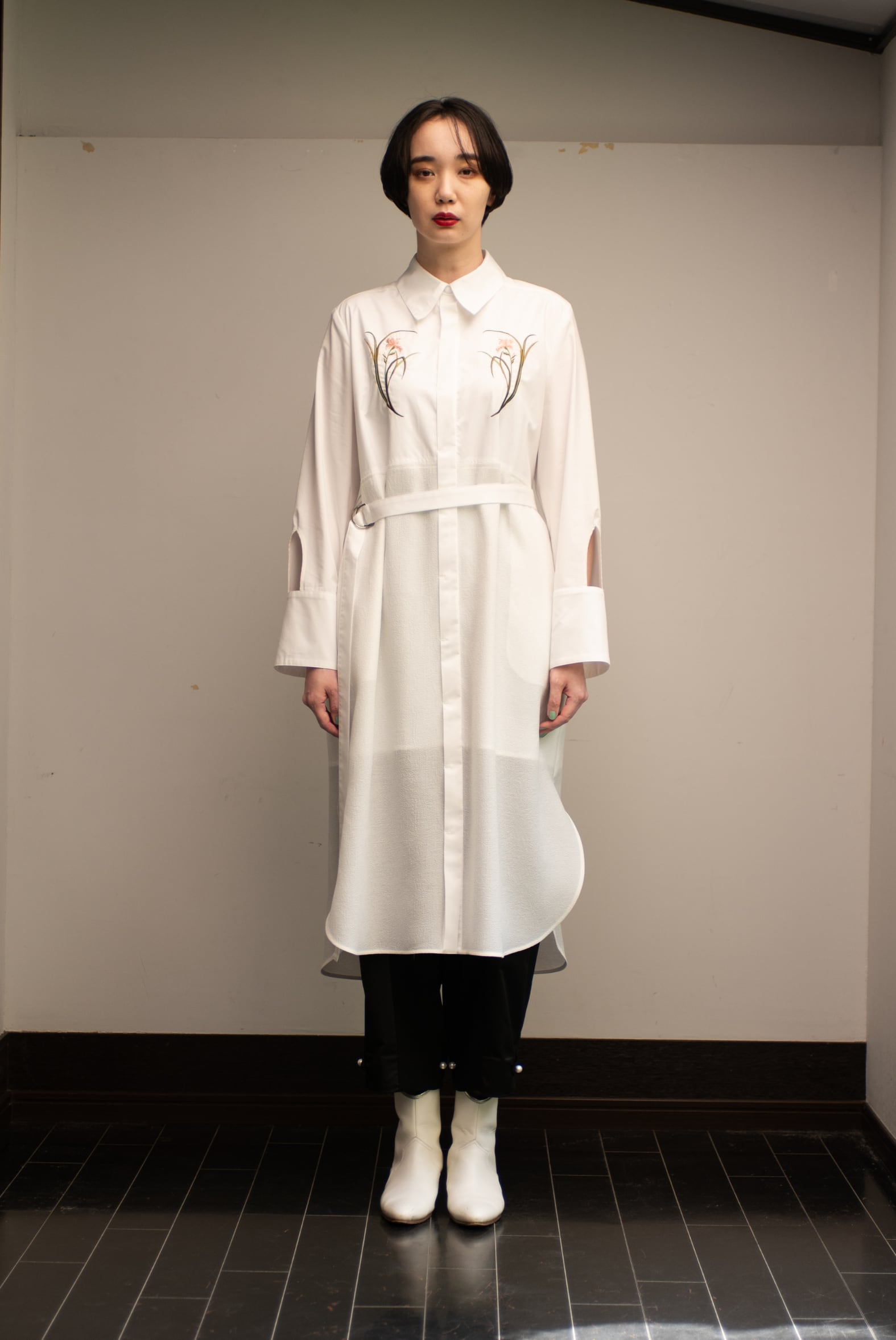 ウエストには同素材の細ベルトを配し、結び方でシルエットに変化を生み出し、ドレスとしても、軽やかなコートのようにも纏えます。