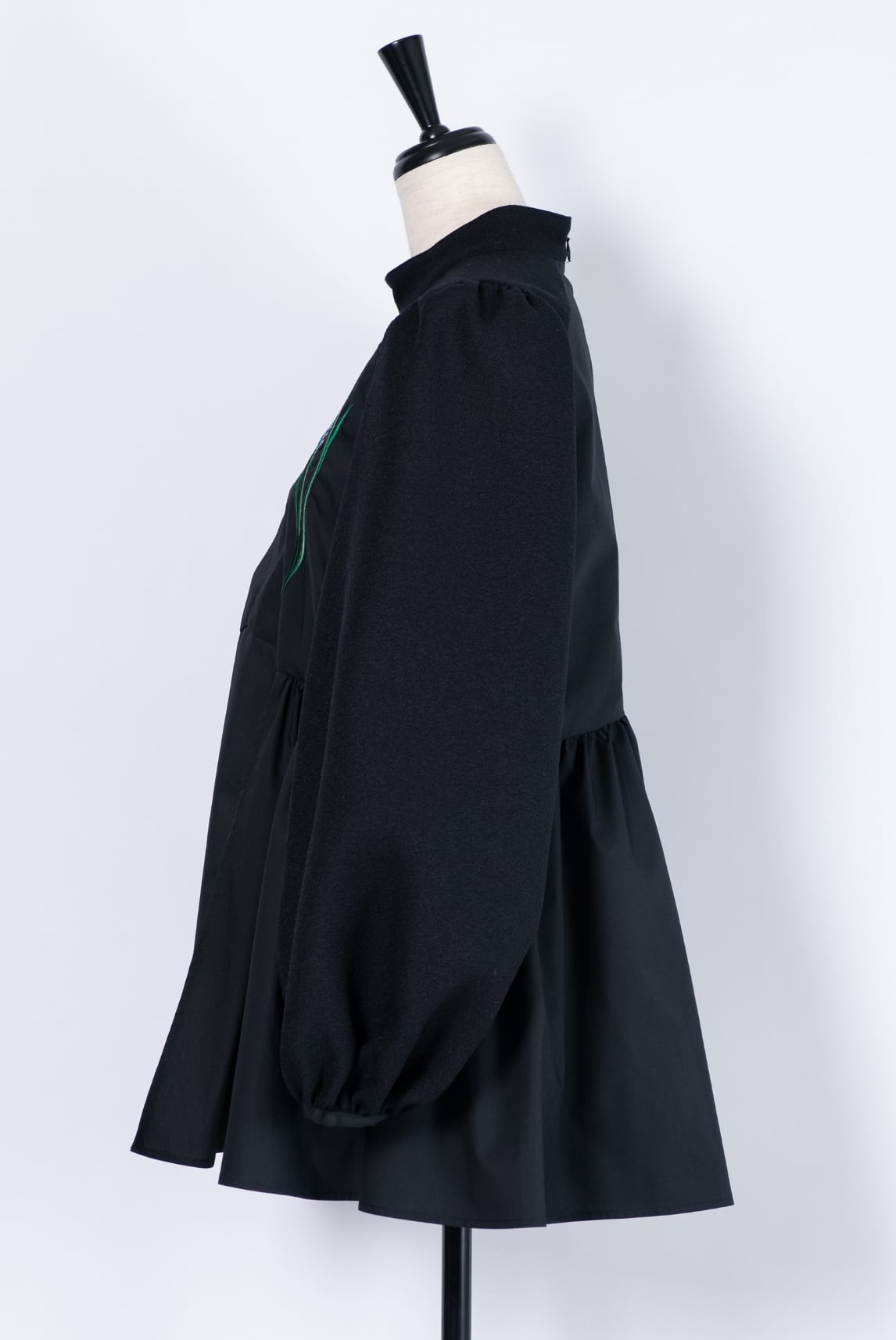 ふんわりと広がるペプラムシルエットがウエストを美しく引き立て、緩やかなボリュームスリーブが気品を添えるデザインに。