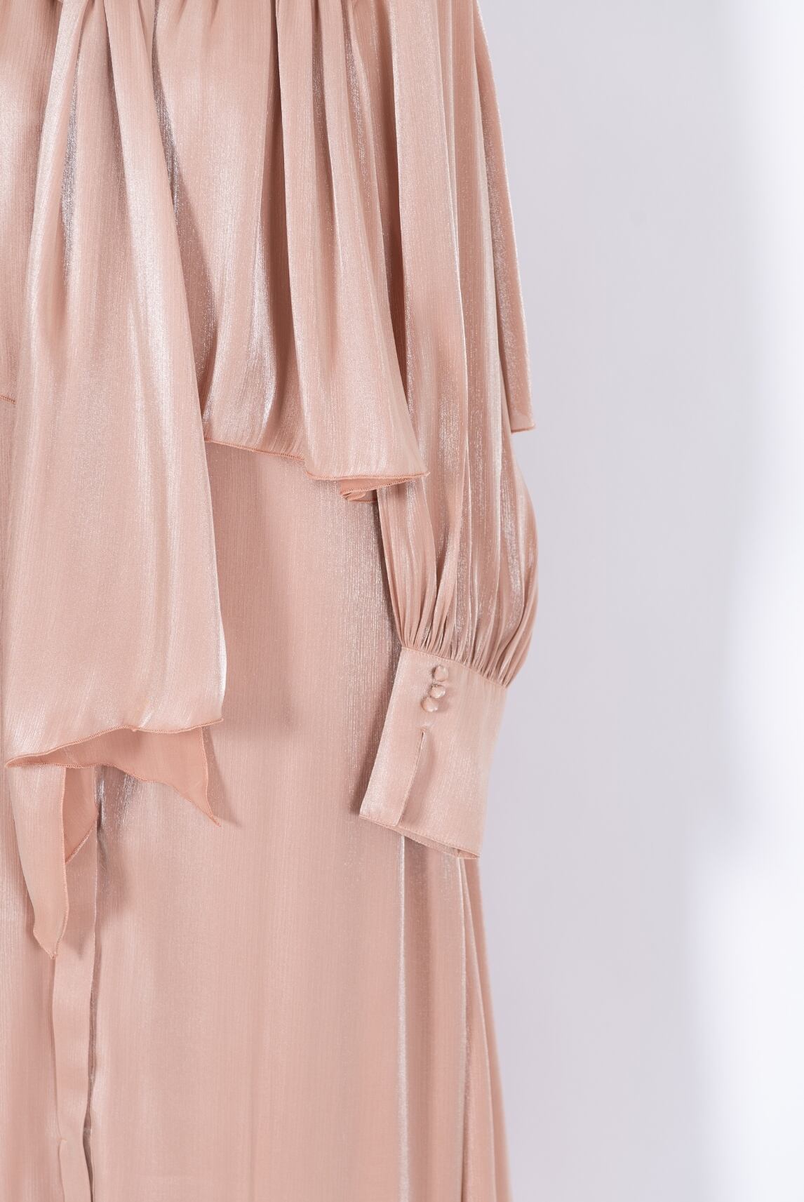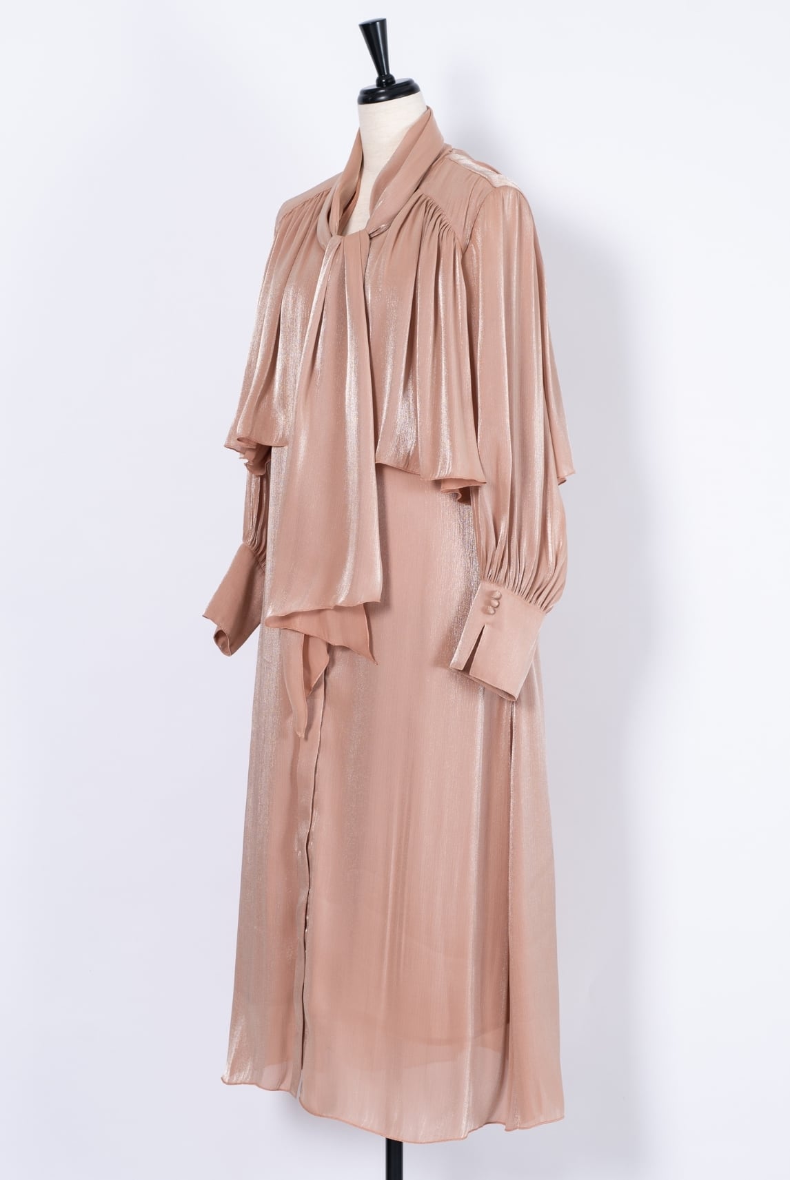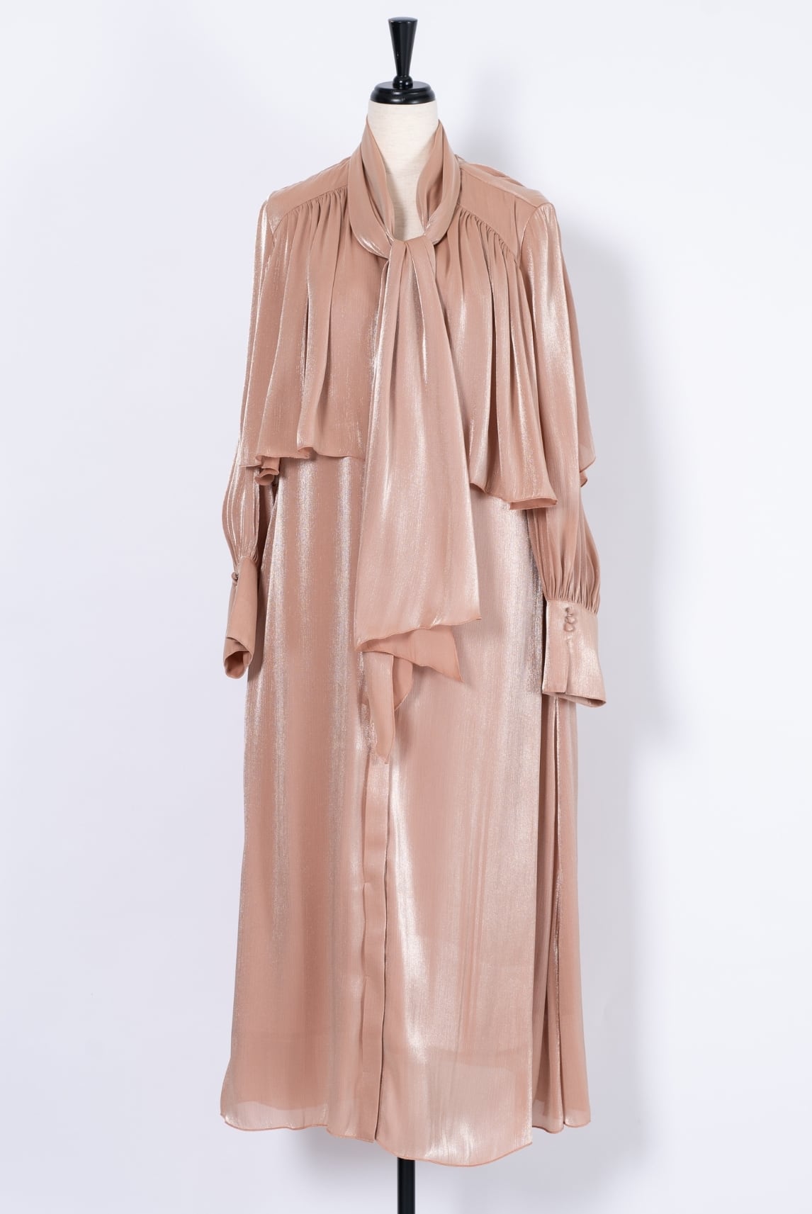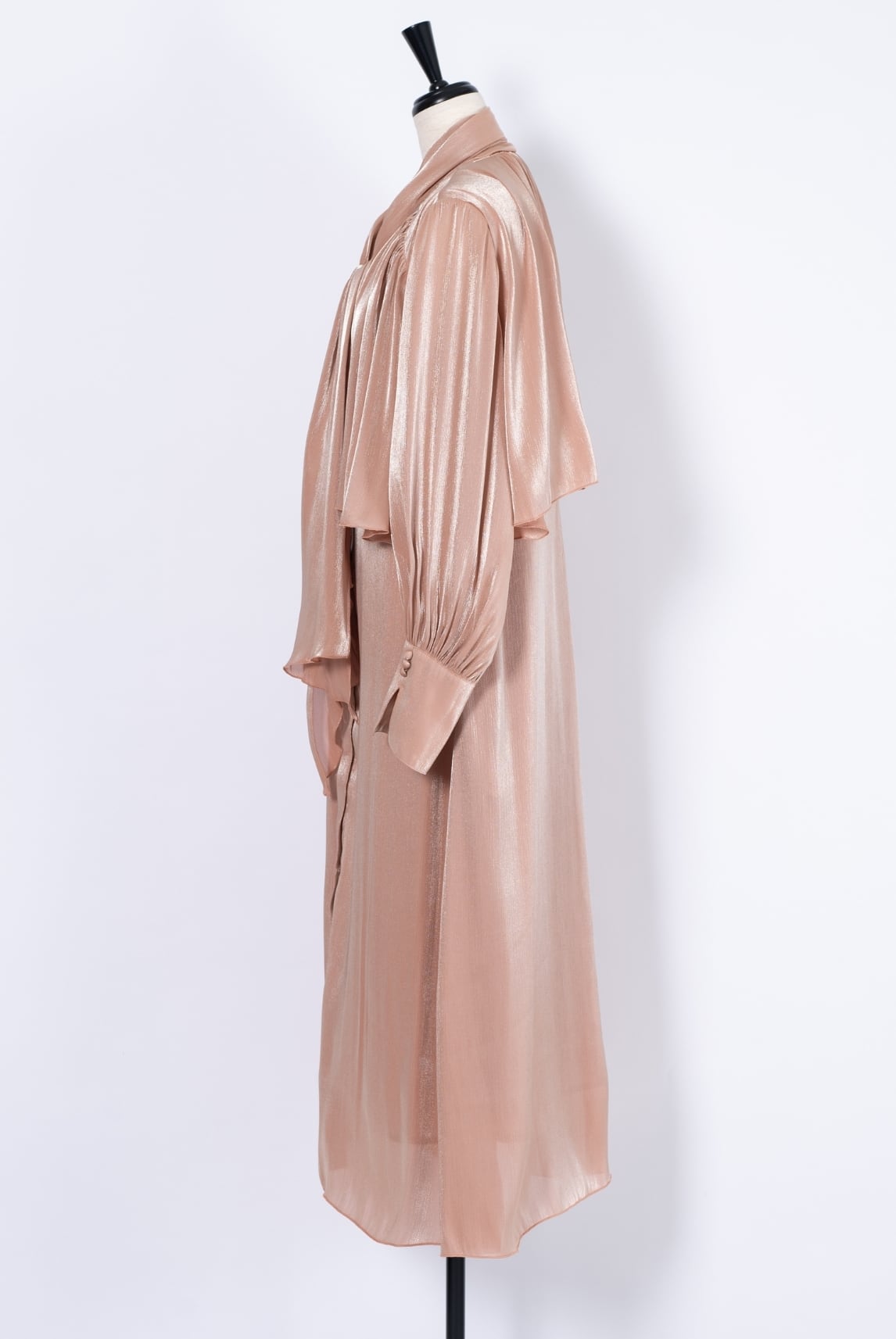 オーロラのように繊細な光沢を放つ楊柳サテンを贅沢に使用したドレス。