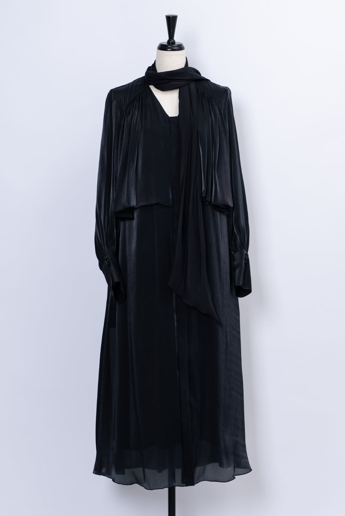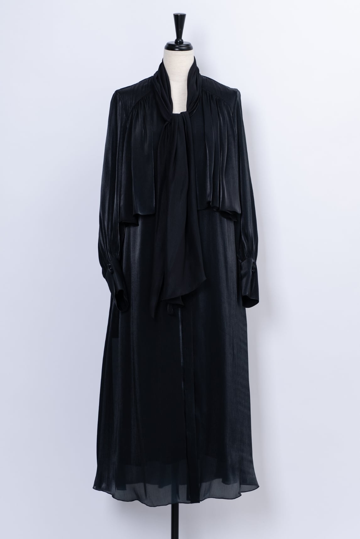 オーロラのように繊細な光沢を放つ楊柳サテンを贅沢に使用したドレス。