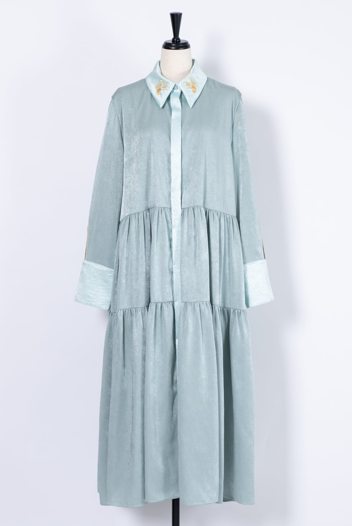 リラックス感がありながらも贅沢に施された襟の刺繍が華やかに彩る一着。