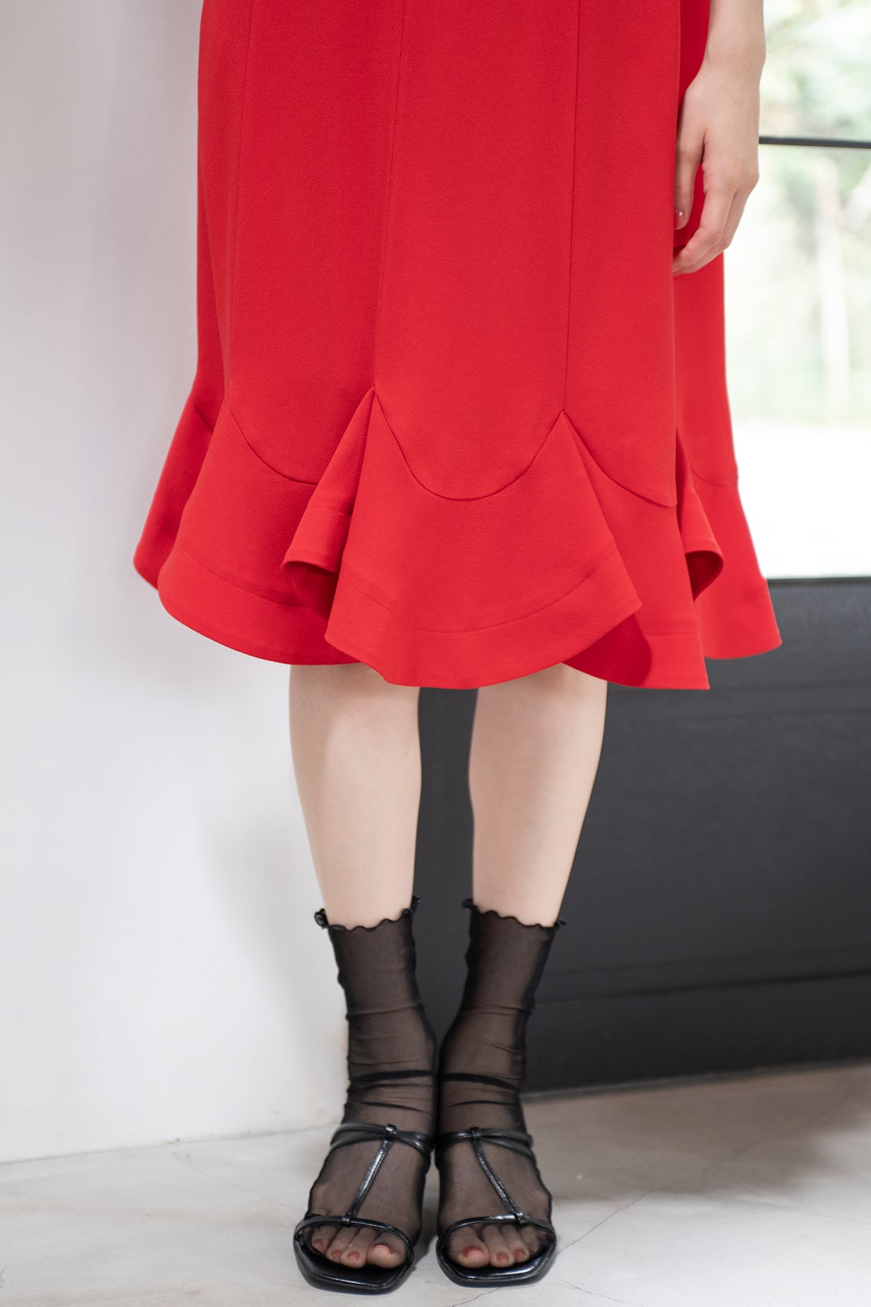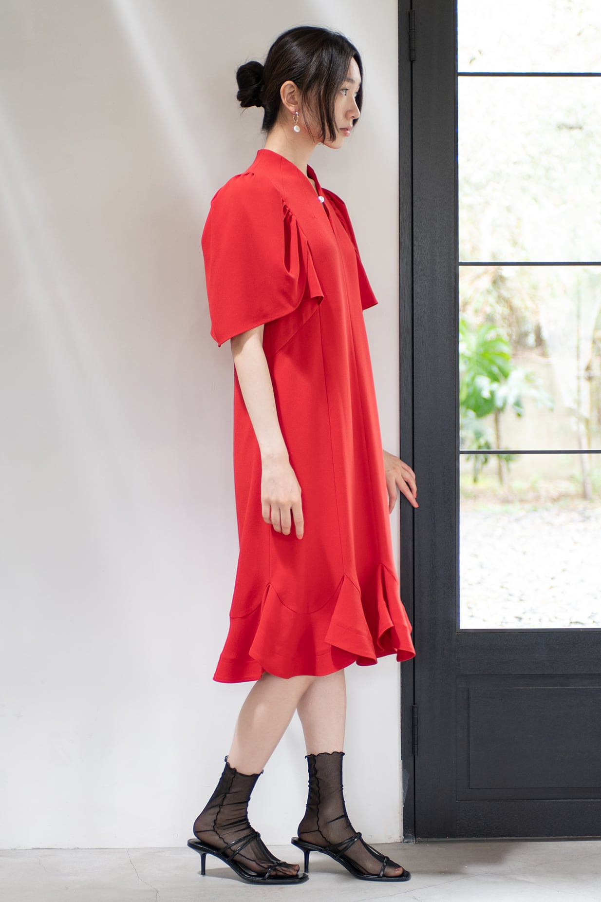 歩くたびにやわらかな揺らぎを生み、動きの中に可憐さを添えます。