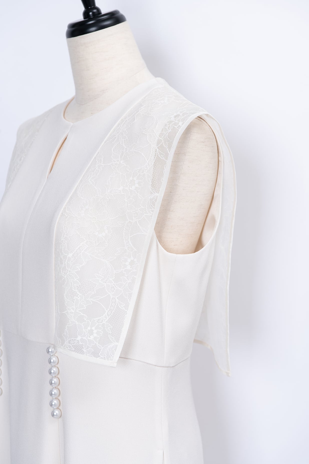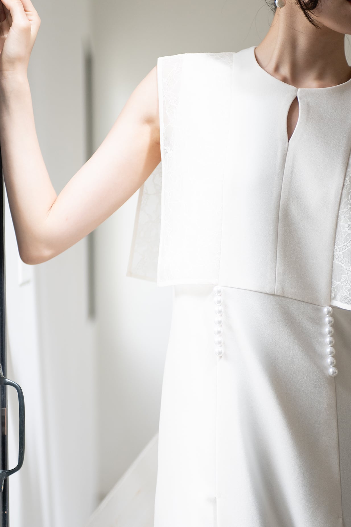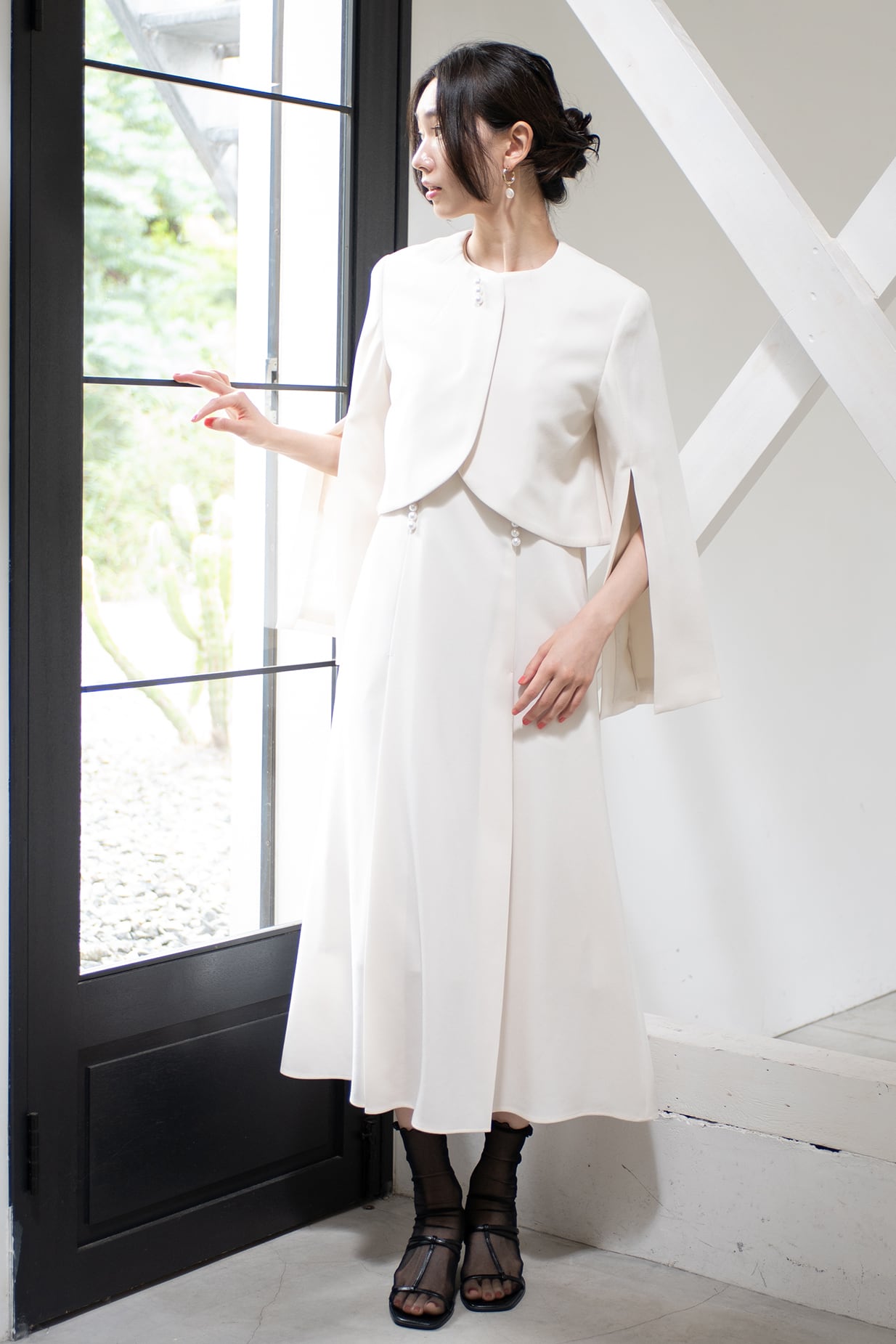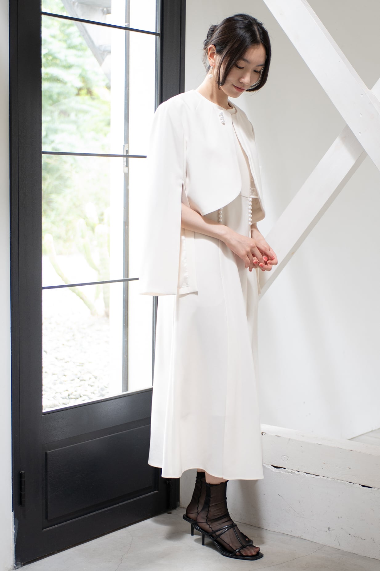 縦に配されたパールディテールがさりげない華やぎを添え、視線を縦へと導くことで、すっきりとした美しいシルエットを演出。