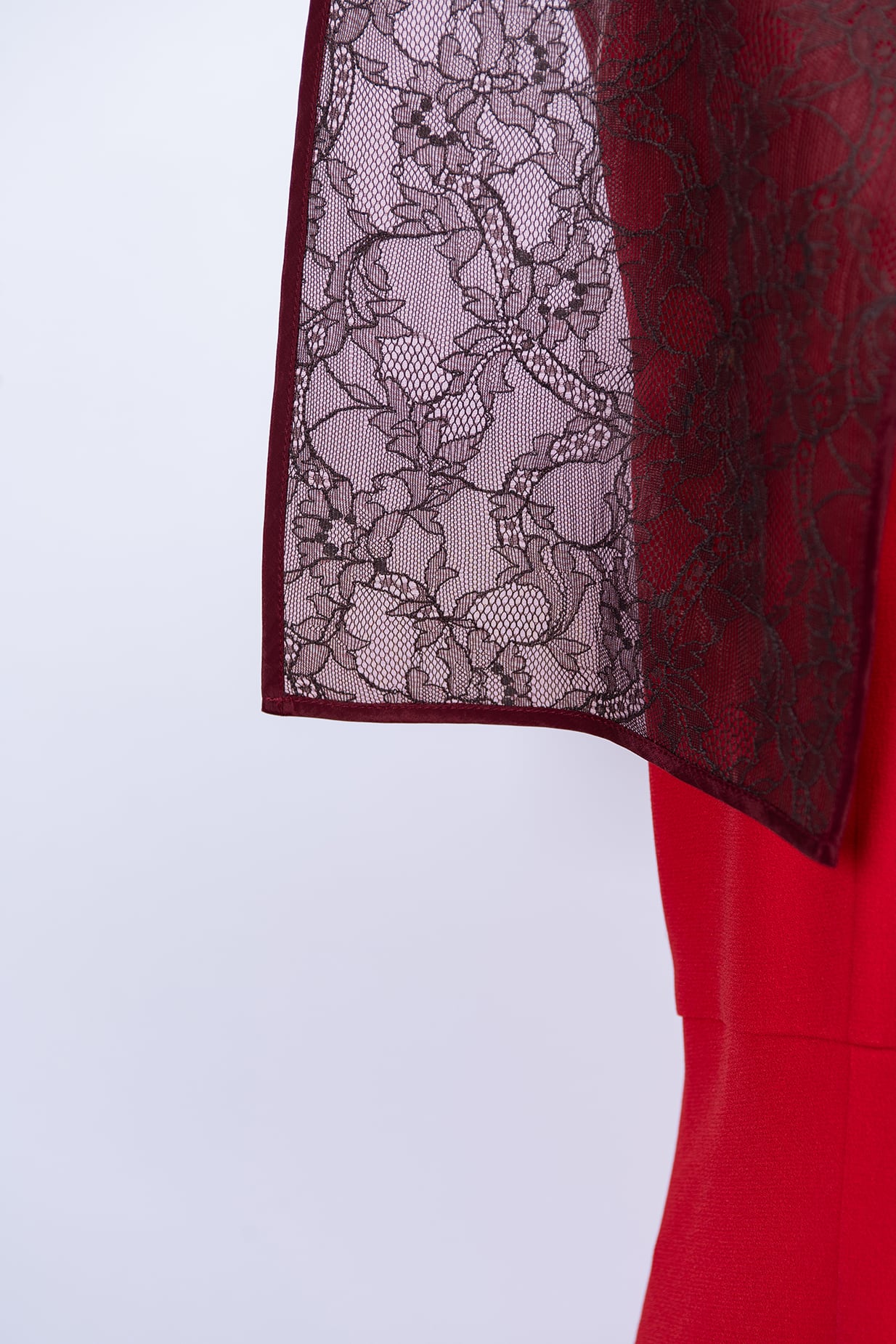 Pearl Box Collar Lace Dress RED