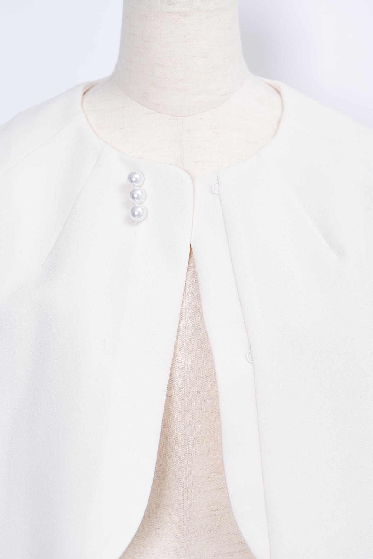 ノーカラーのミニマルなデザインは、ブラウスやドレスなど、レイヤード次第で印象を変え、オケージョンからビジネスシーン、洗練されたデイリースタイルまで幅広く活躍。