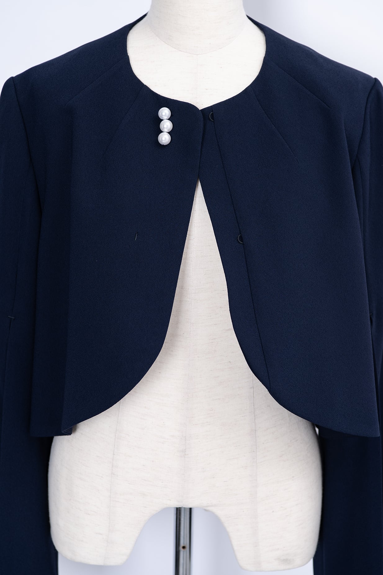 ノーカラーのミニマルなデザインは、ブラウスやドレスなど、レイヤード次第で印象を変え、オケージョンからビジネスシーン、洗練されたデイリースタイルまで幅広く活躍。
