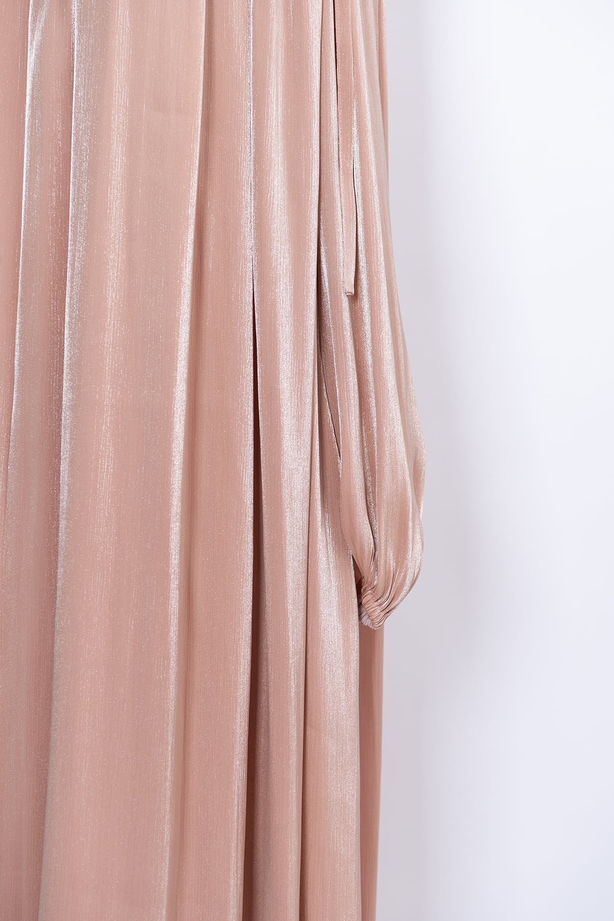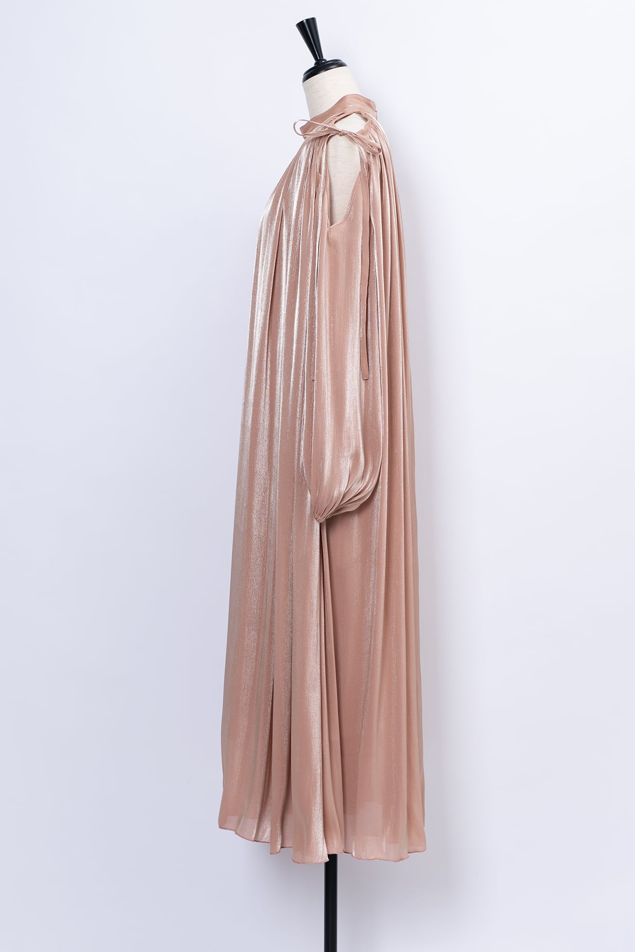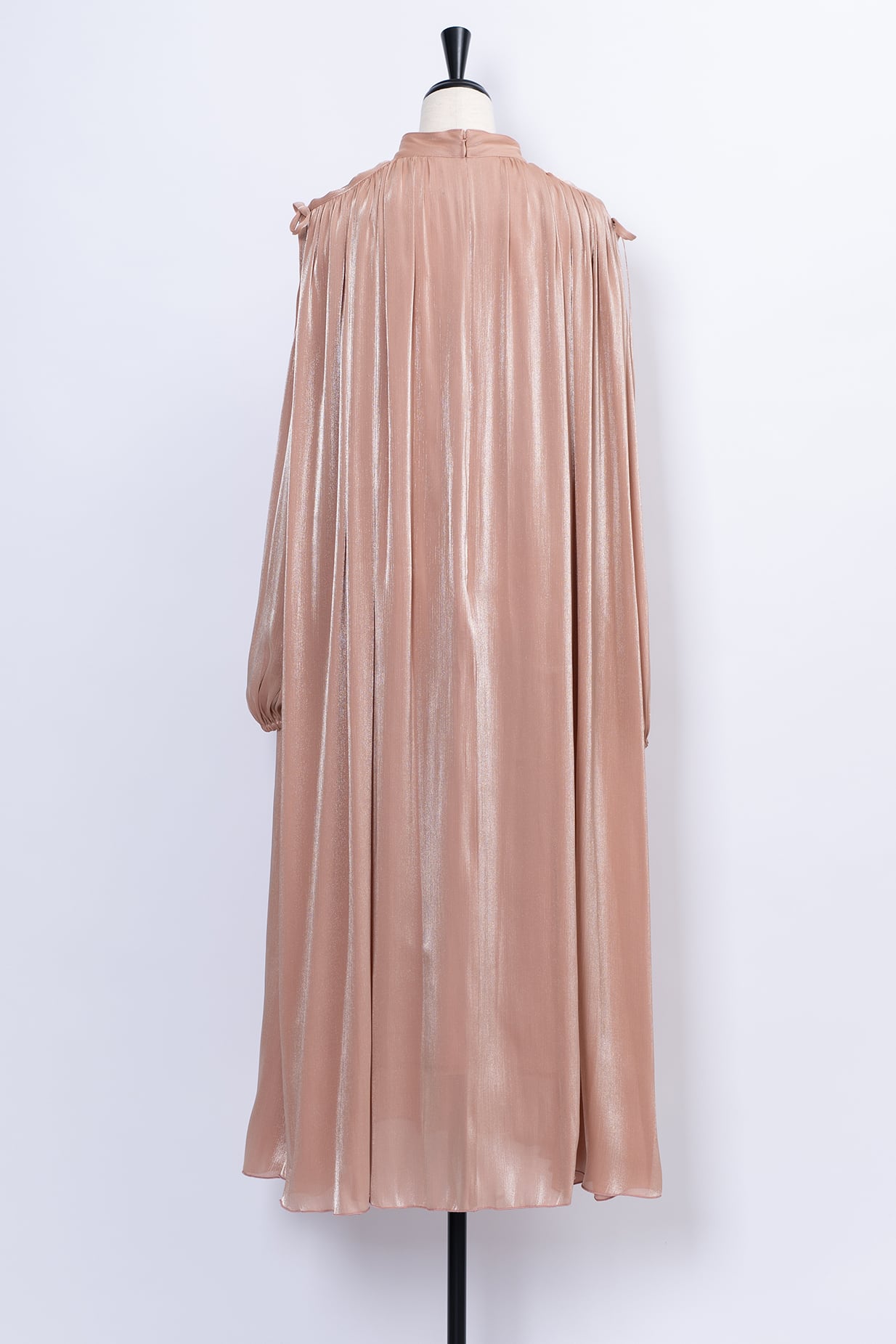 繊細なギャザーが生み出す柔らかなドレープが、空気を纏うように優しげな表情を演出するドレス。