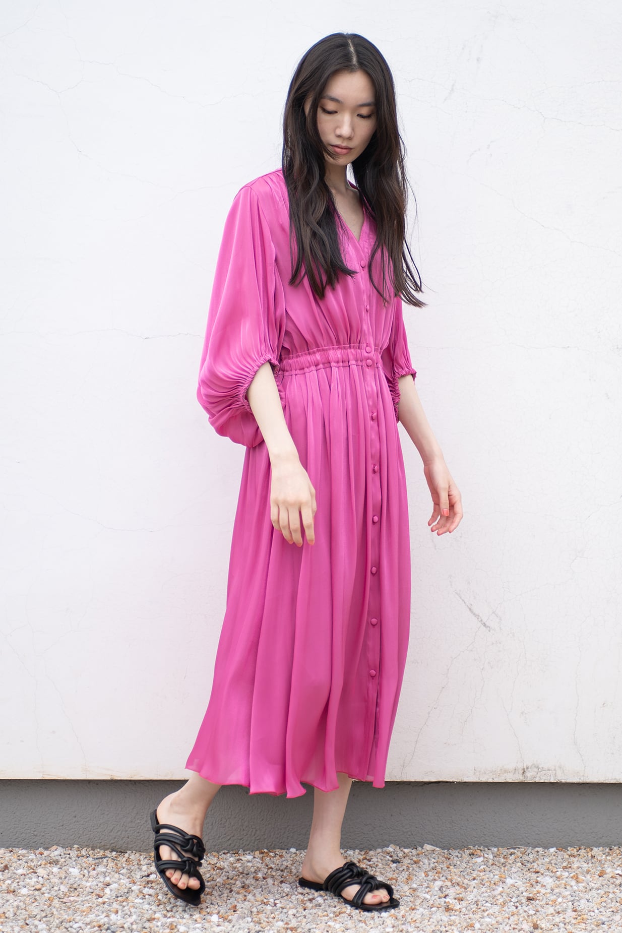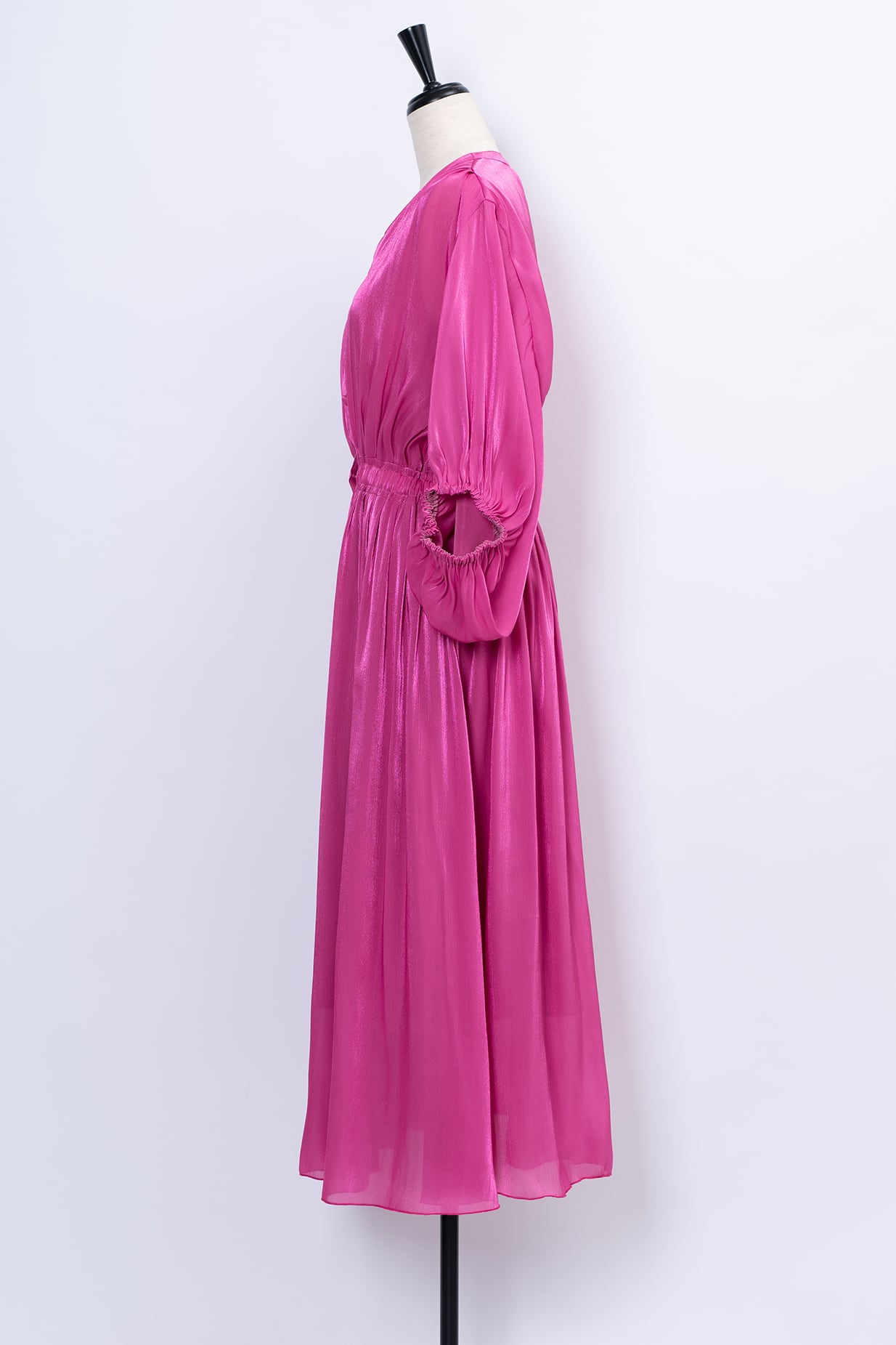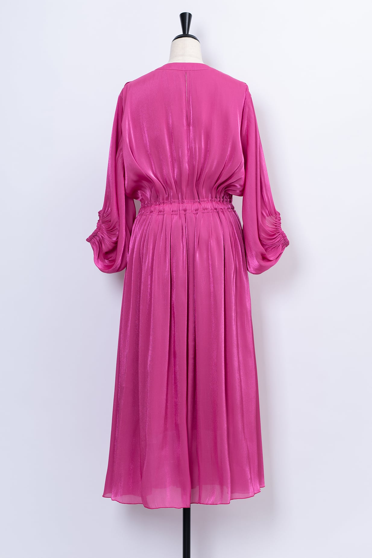 ギャザーが生み出す柔らかなドレープが優しげな表情を魅せるドレス。