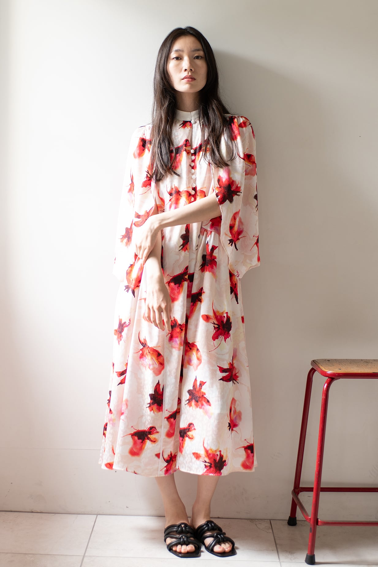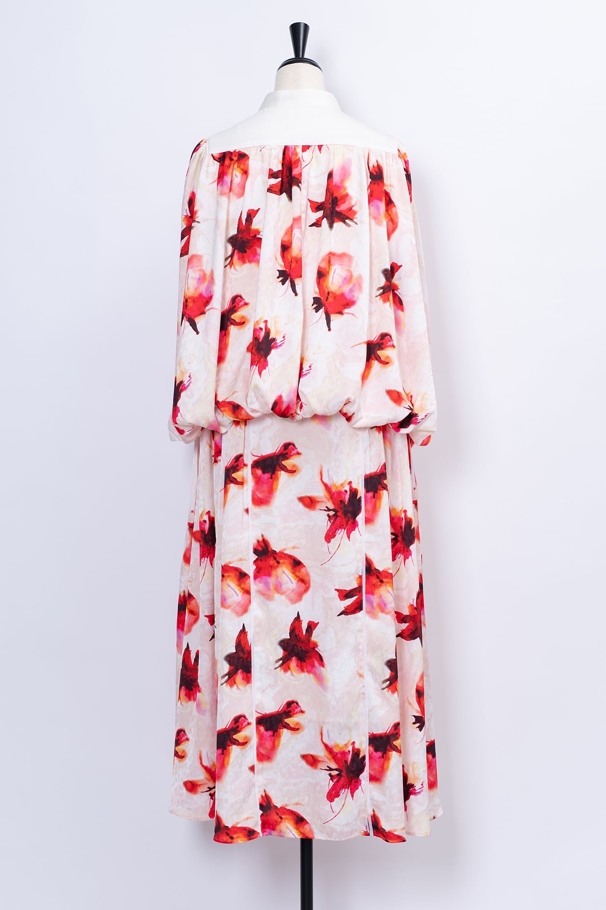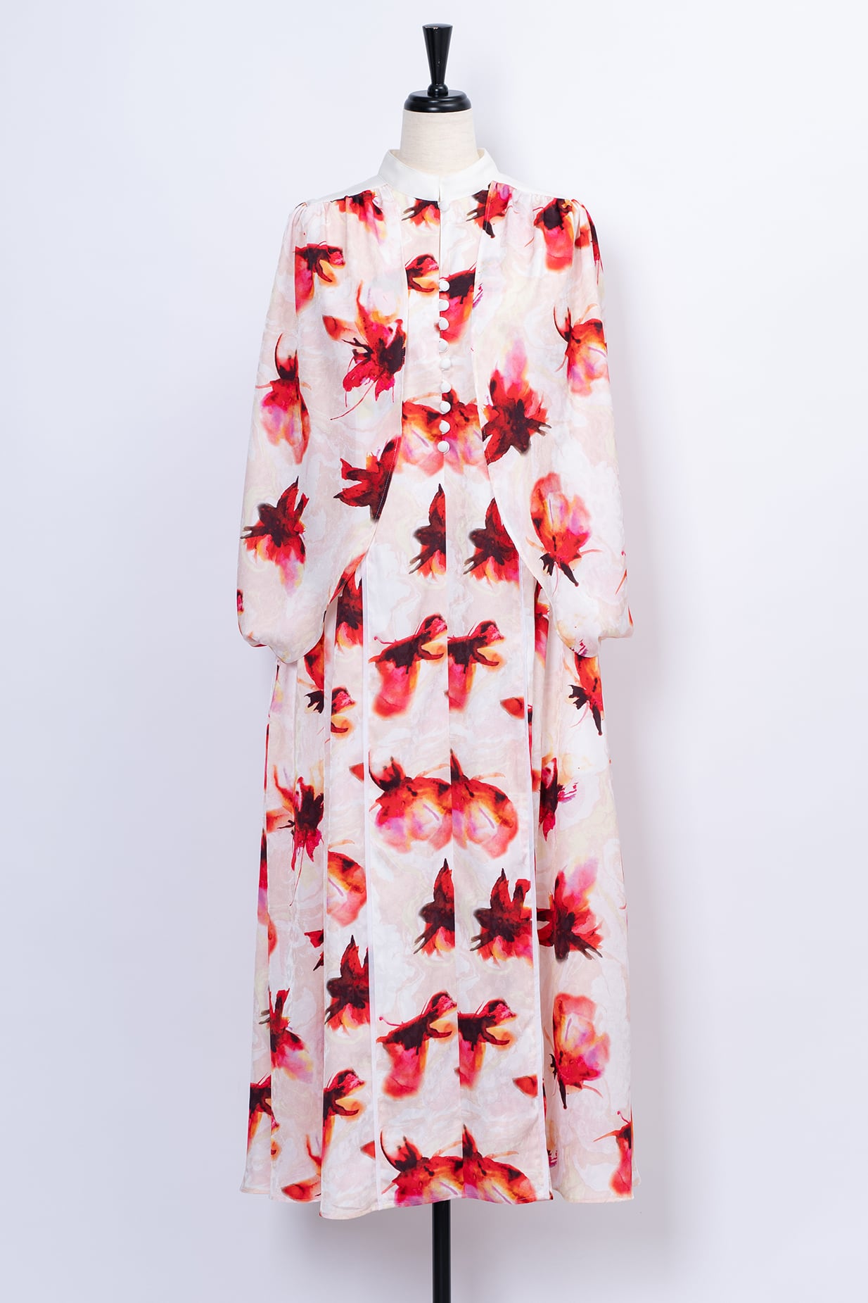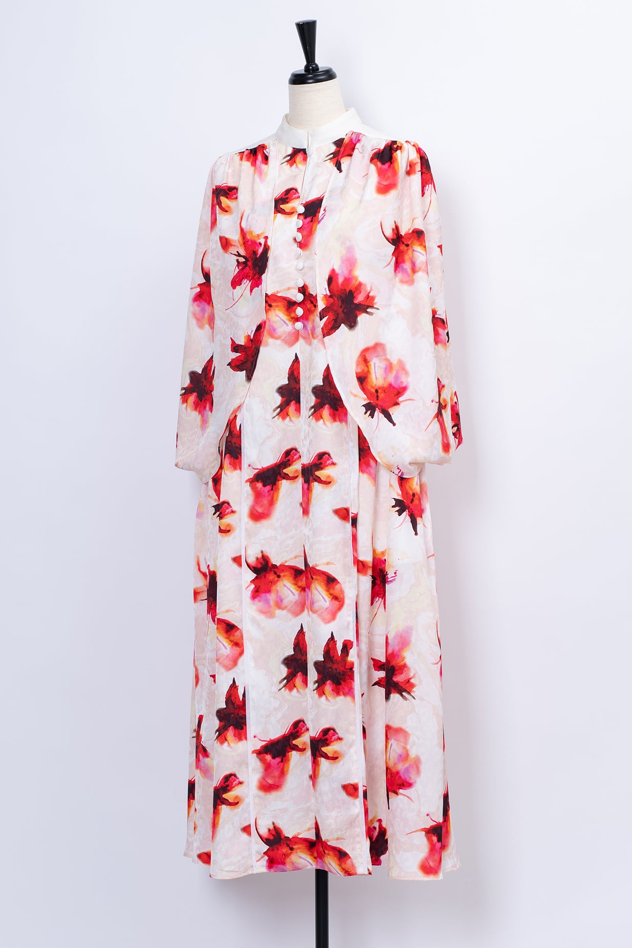 水彩画のようににじむオリジナルのフラワープリントは、甘さを抑えた色調で静かな華やぎを添え、日常からリゾート、フォーマルシーンまで幅広く対応いたします。