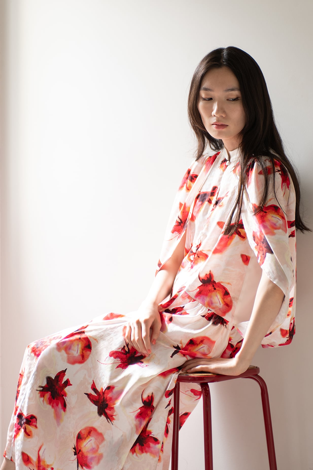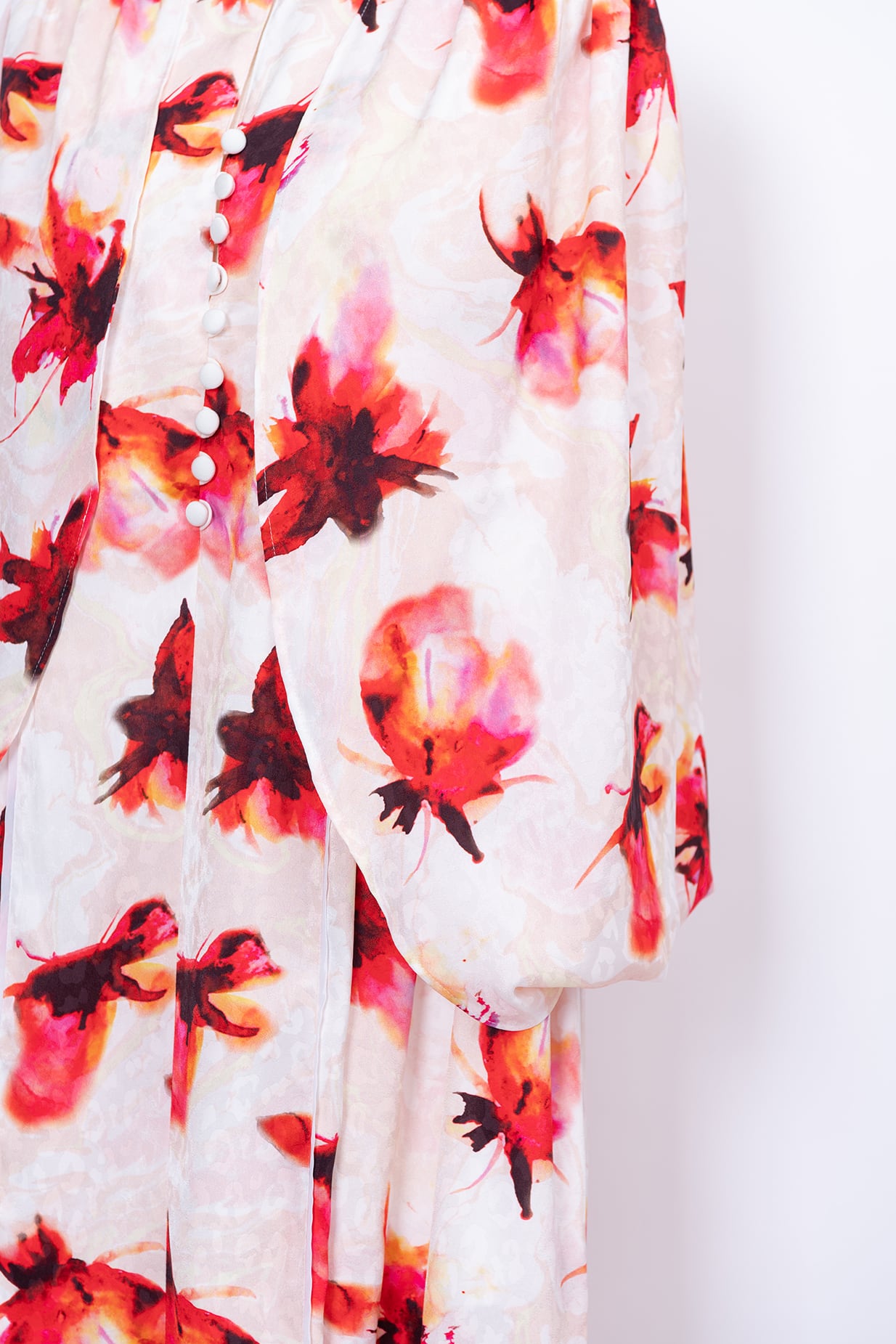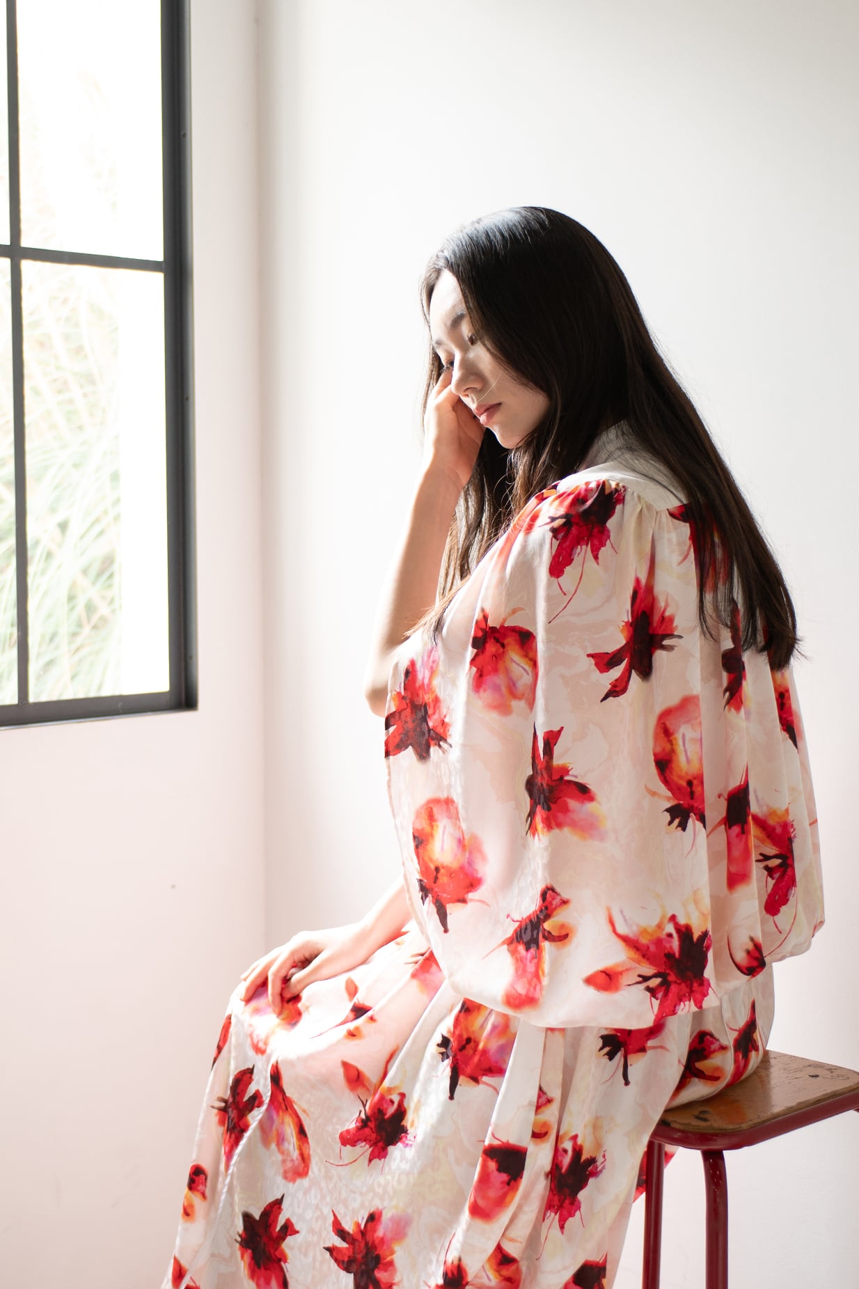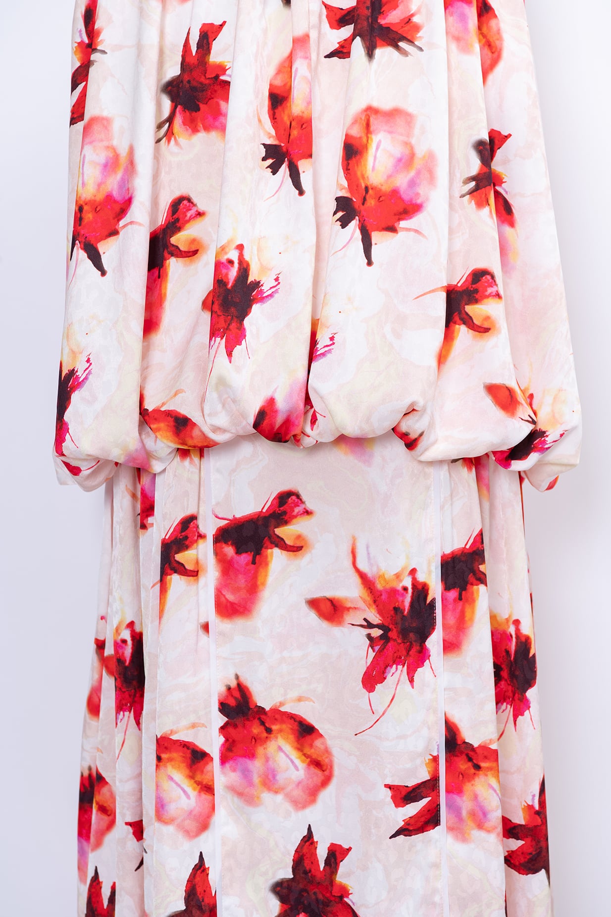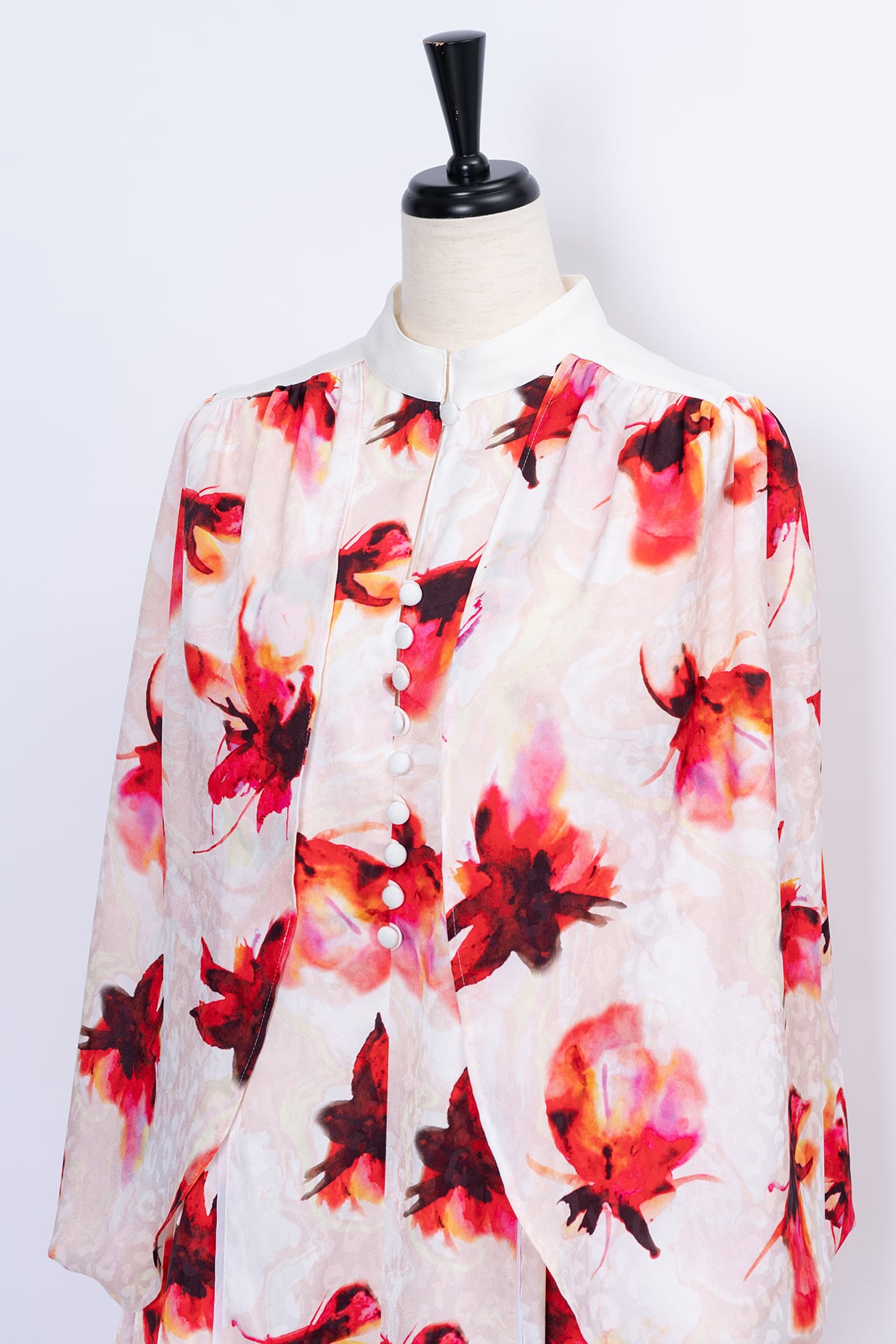 水彩画のようににじむオリジナルのフラワープリントは、甘さを抑えた色調で静かな華やぎを添え、日常からリゾート、フォーマルシーンまで幅広く対応いたします。