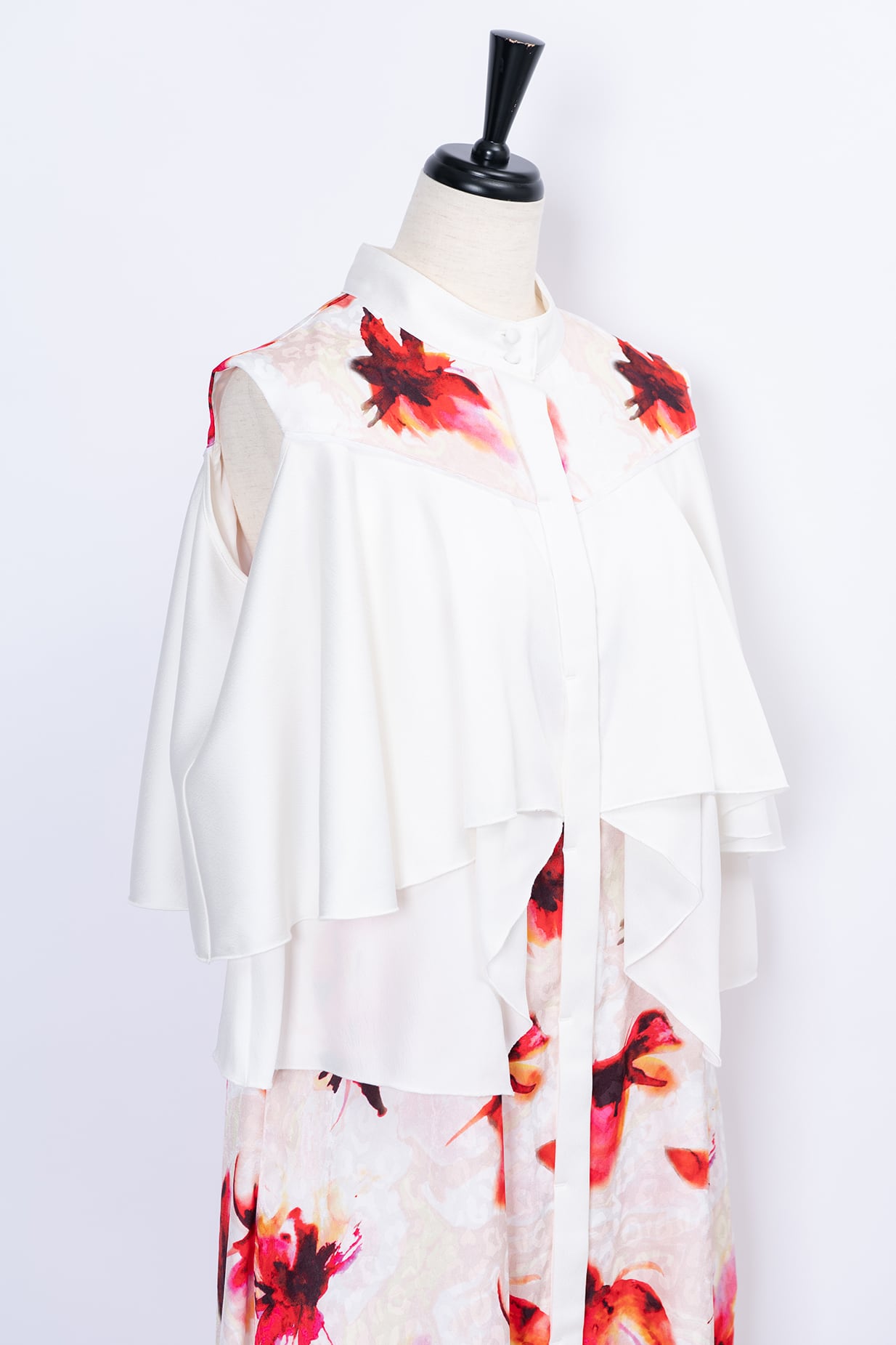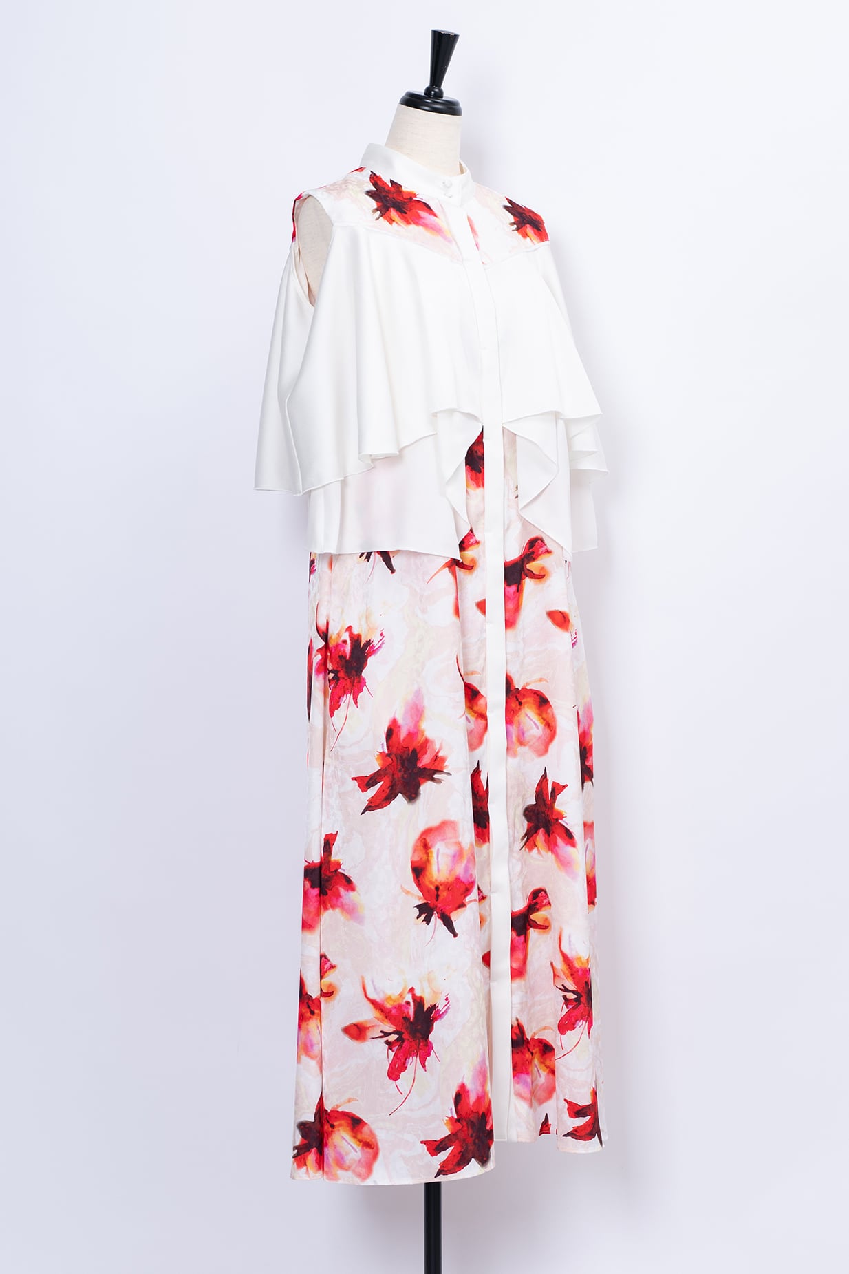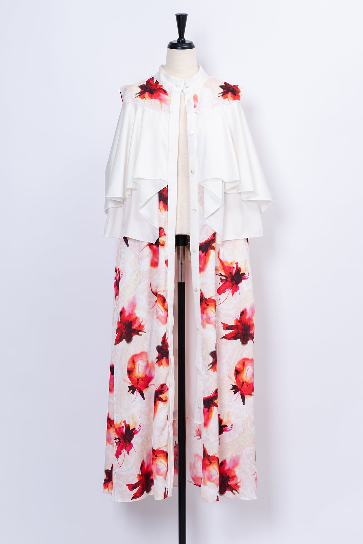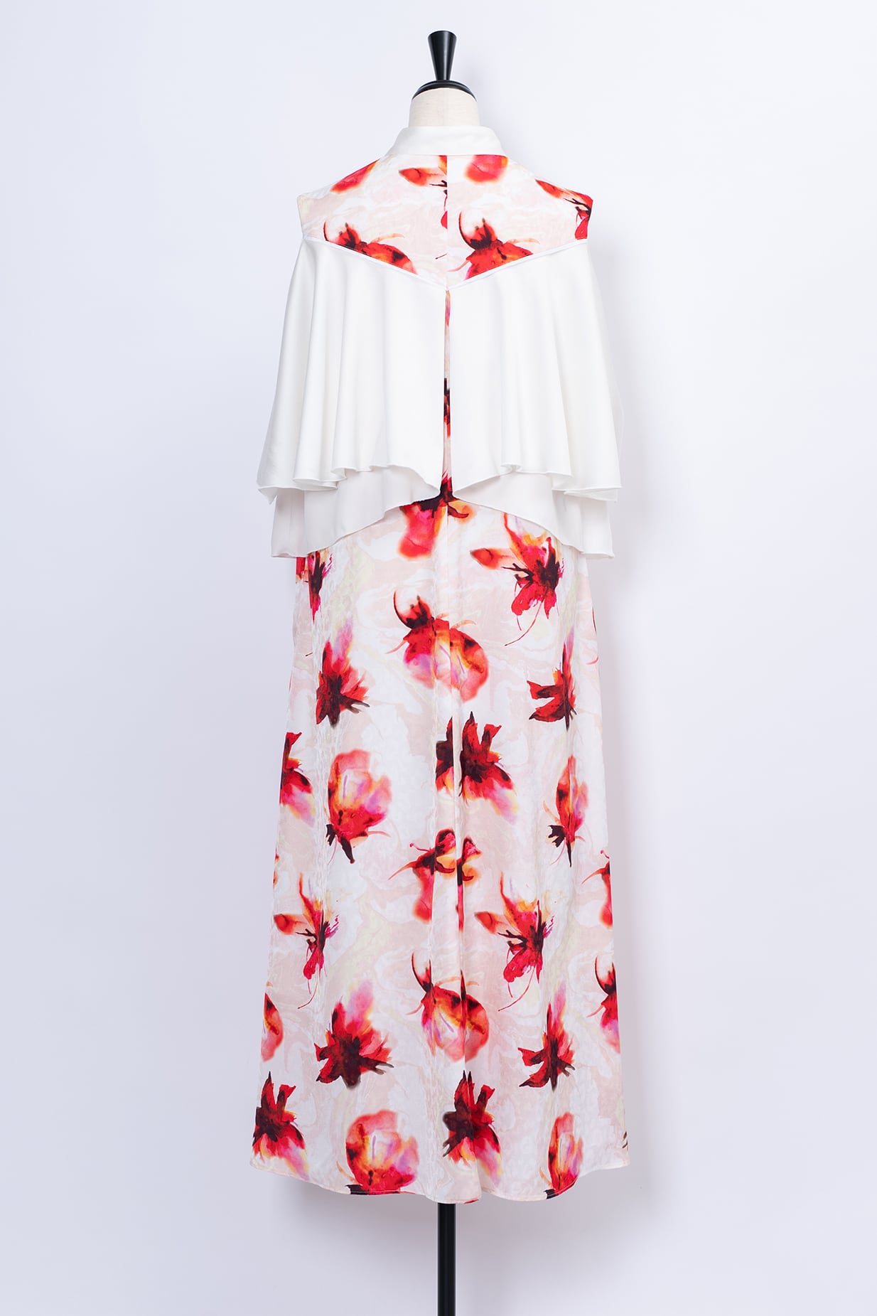 水彩画のようににじむオリジナルのフラワープリントは、甘さを抑えた色調で静かな華やぎを添え、日常からフォーマルシーンまで幅広く対応いたします。
