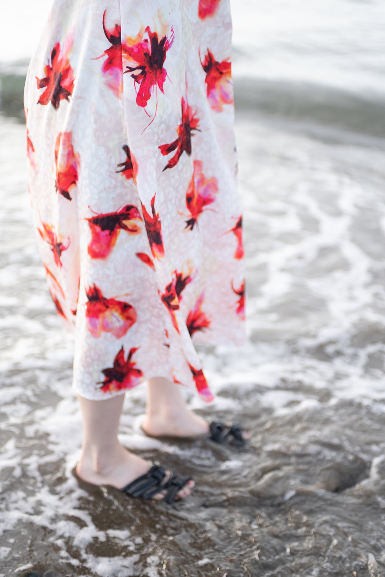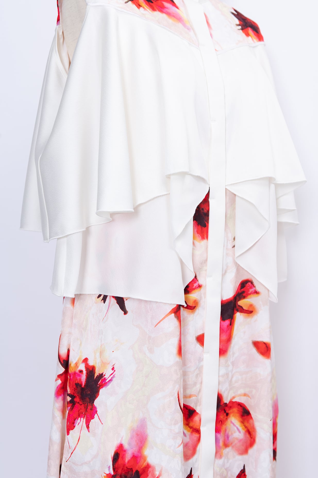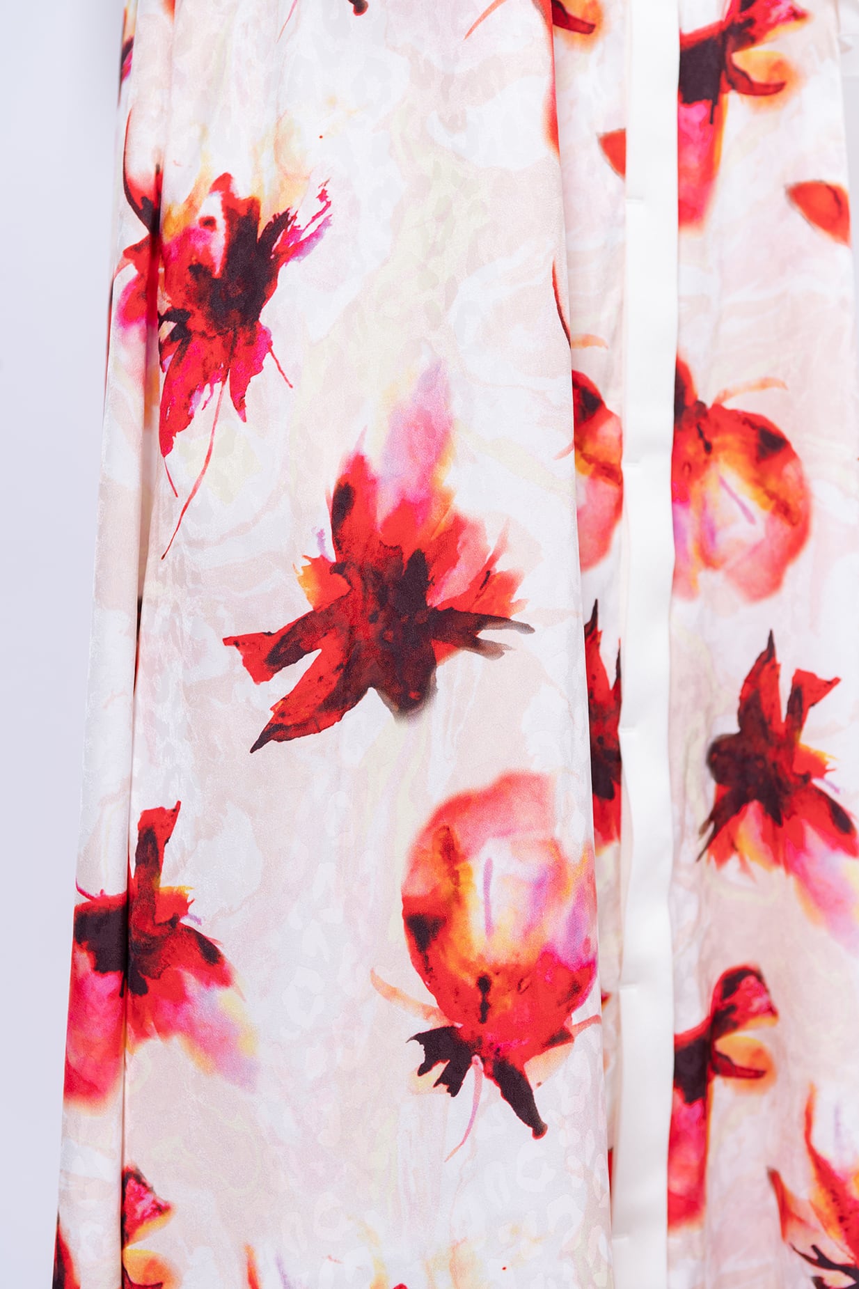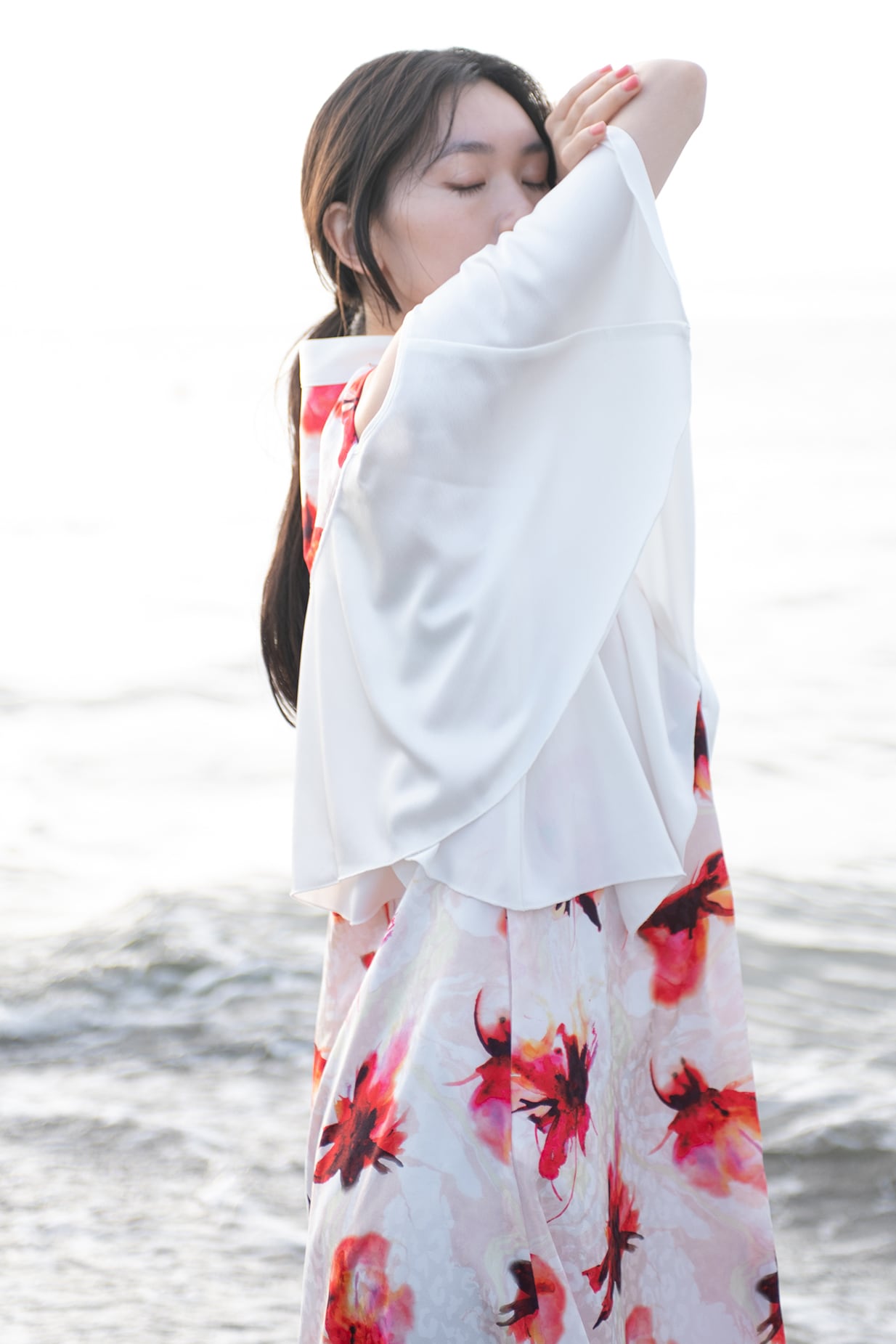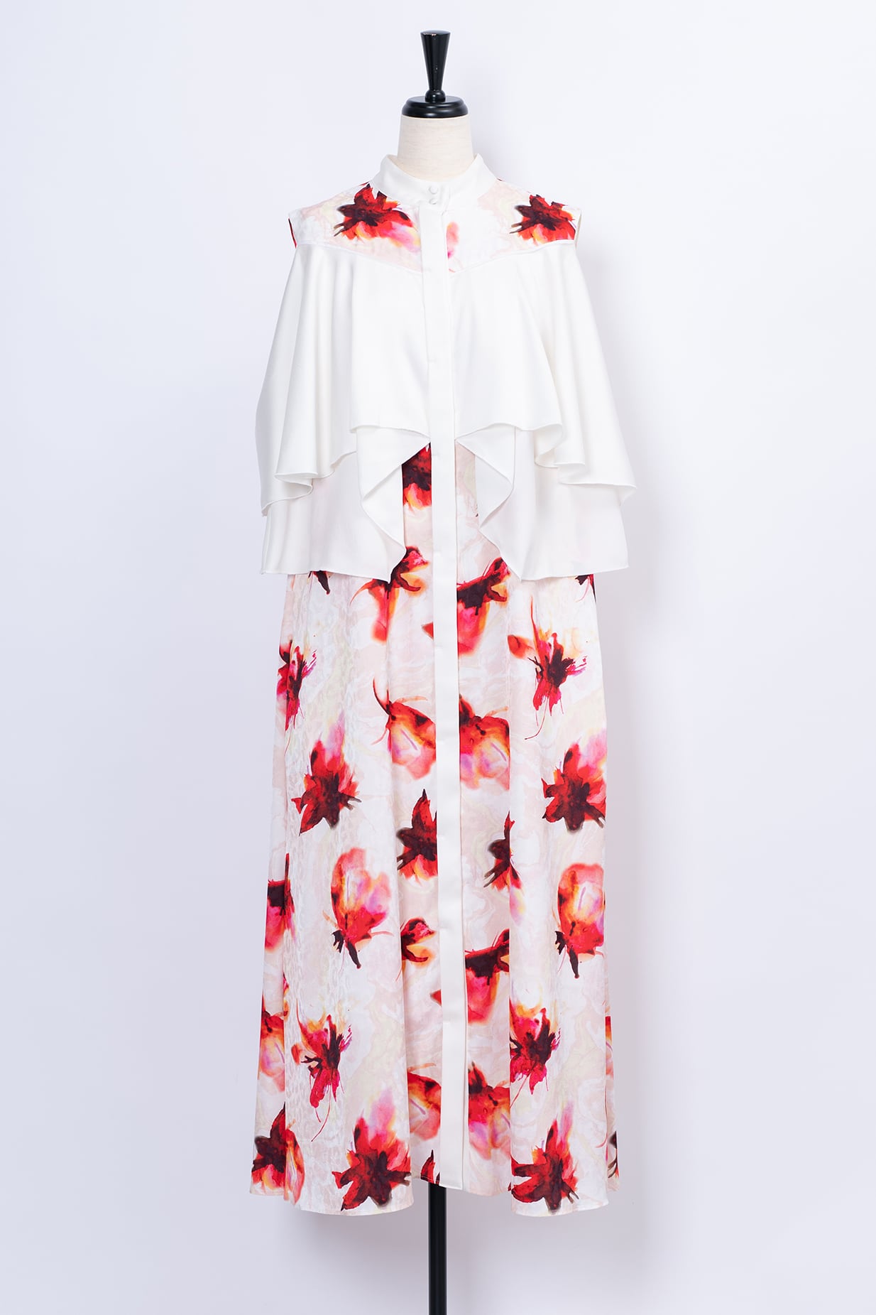 水彩画のようににじむオリジナルのフラワープリントは、甘さを抑えた色調で静かな華やぎを添え、日常からフォーマルシーンまで幅広く対応いたします。