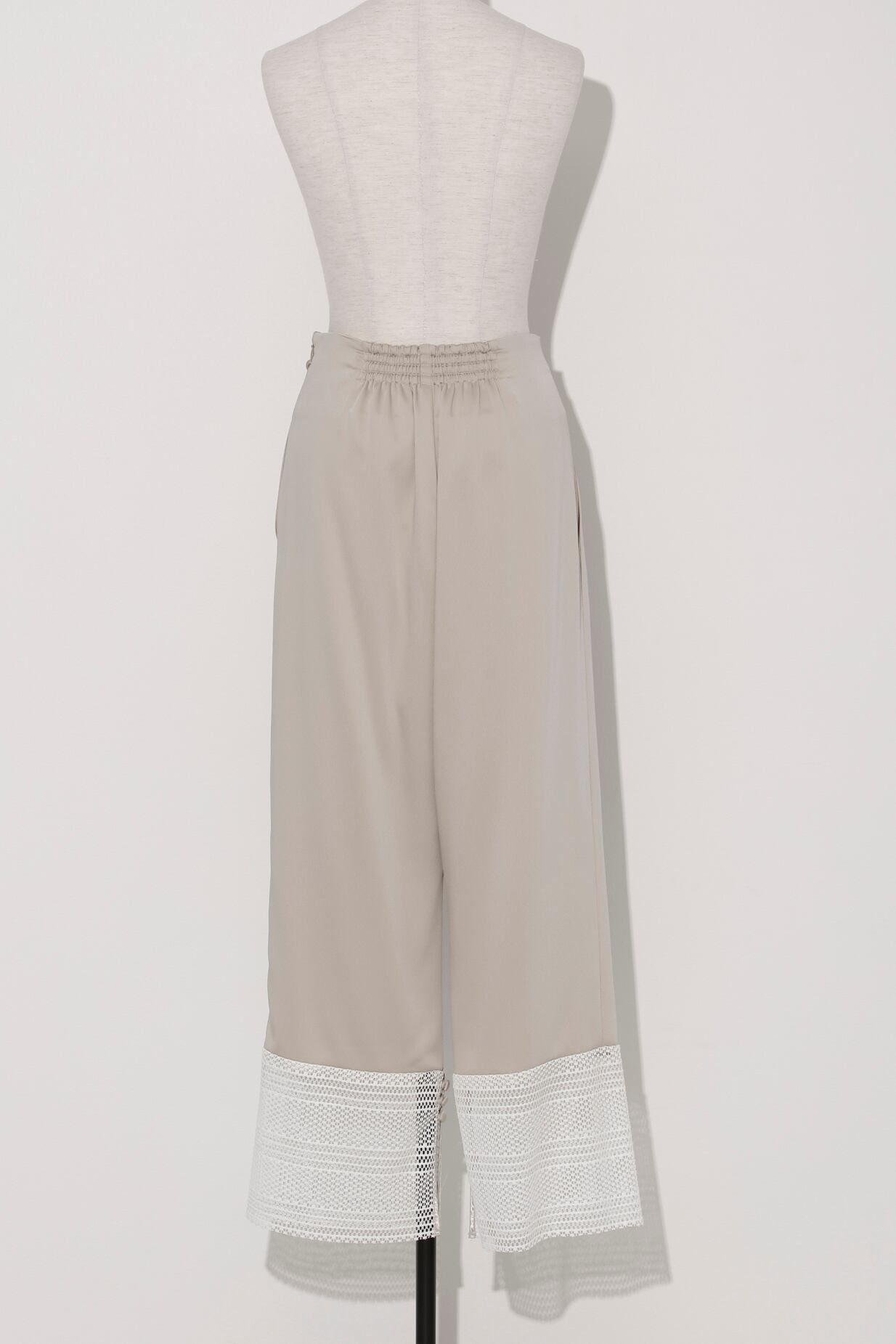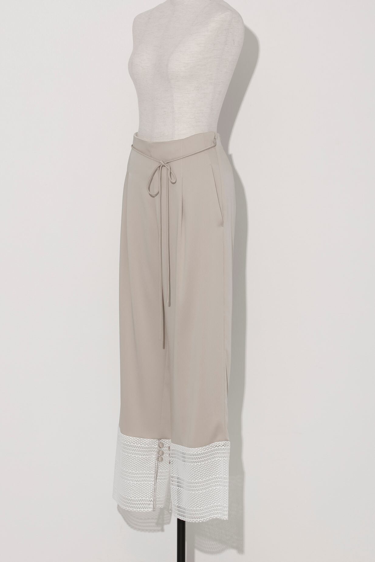 裾部分のメッシュ柄レースがデザインポイントのサテンパンツ。