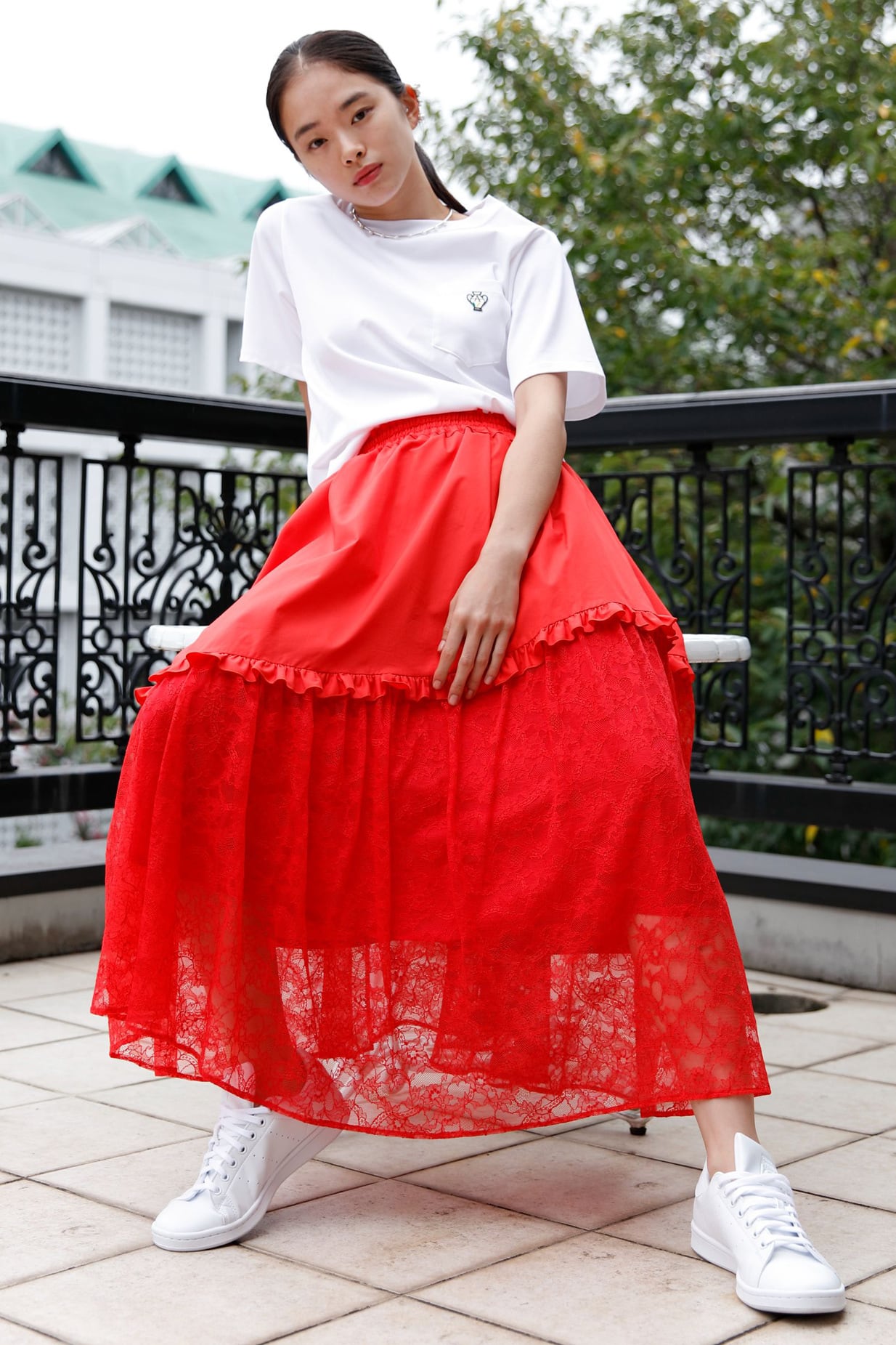 Flower Lace Combi Skirt RED