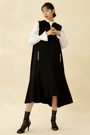 ギャザー切替のフレアシルエットはスタイルアップ効果も抜群。