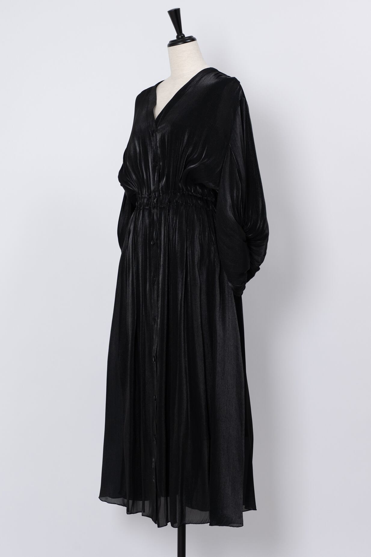 ギャザーの生み出す柔らかなドレープが優しげな表情を魅せるドレス。