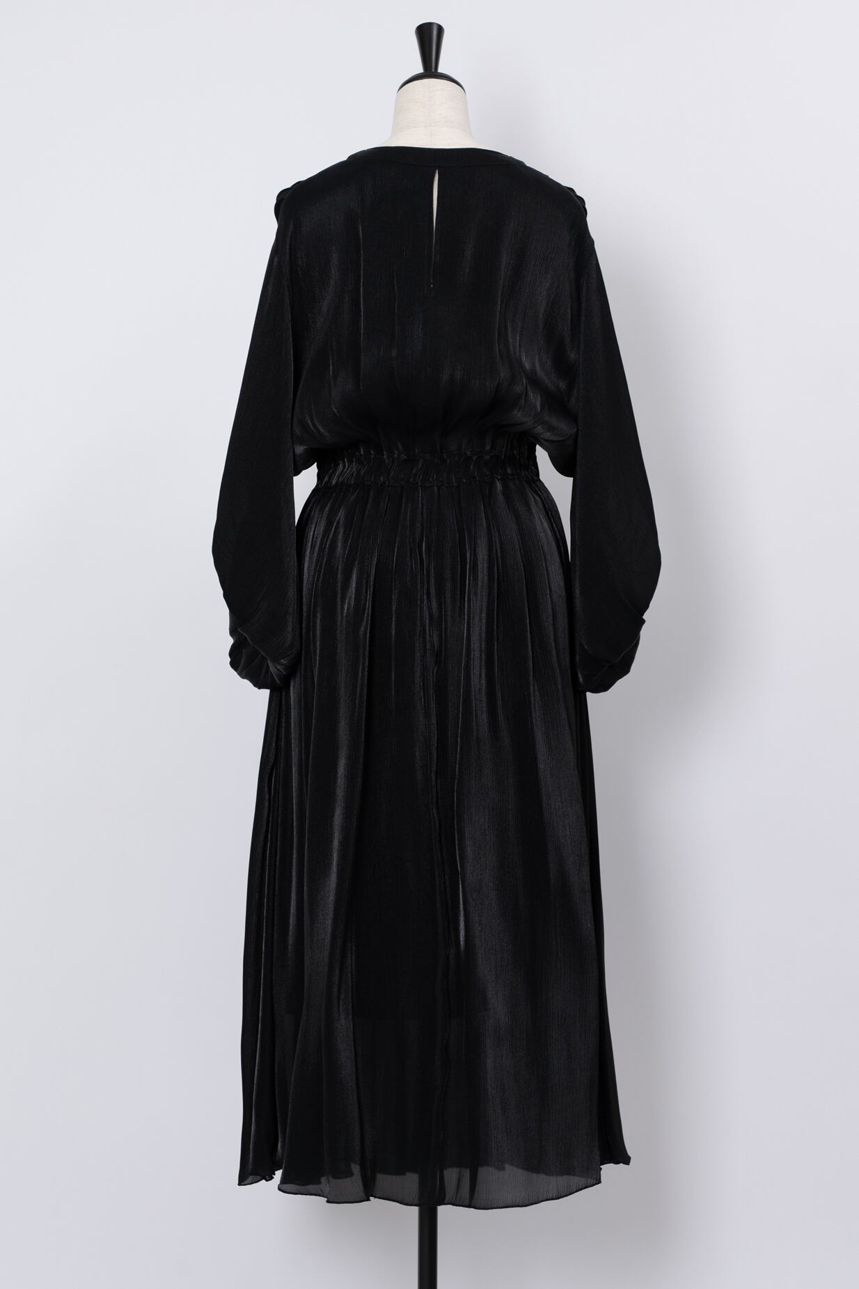 ふっくらとしたボリュームスリーブも愛らしい印象をプラス。ウエストはゴム仕様できゅっと引き締め、裾に向かってふわりと広がるフレアシルエットがエレガントな着こなしを叶えてくれます。