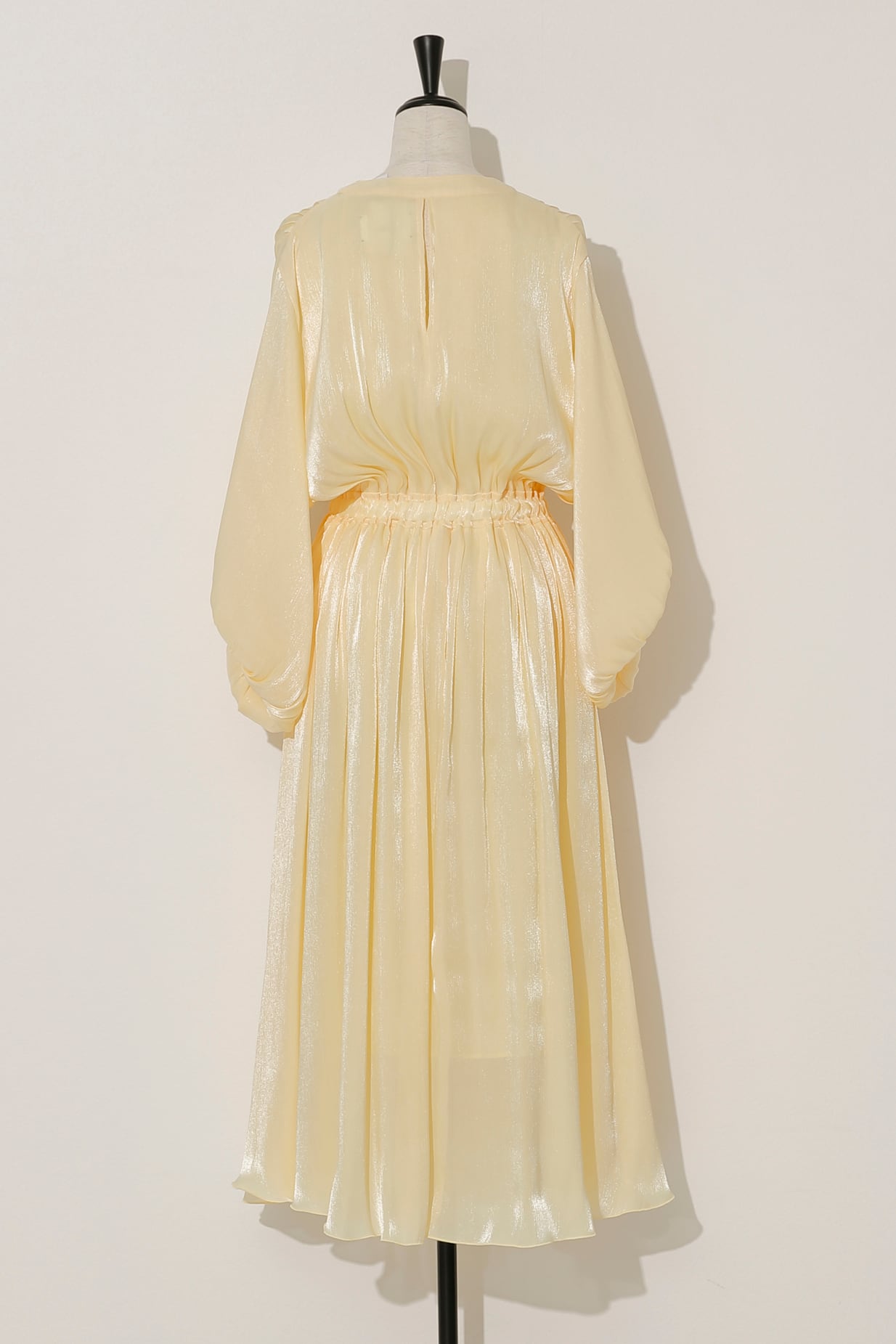 オーロラのようにきらめく楊柳サテンを使用し、動くたびに輝きを纏います。