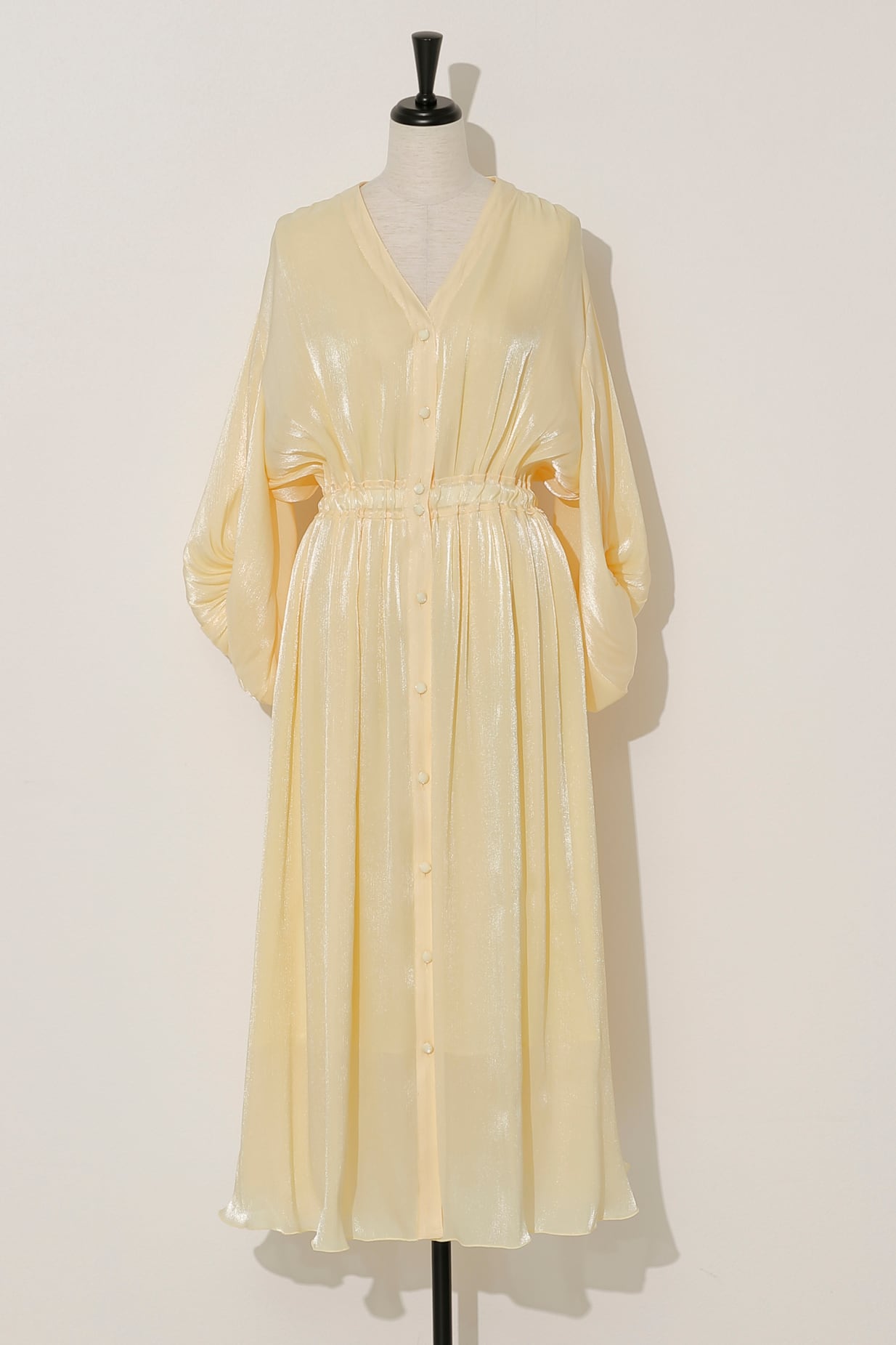 ギャザーが生み出す柔らかなドレープが優しげな表情を魅せるドレス。