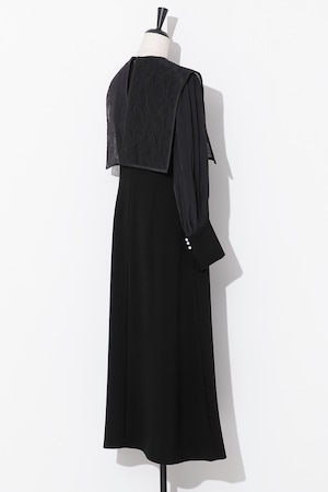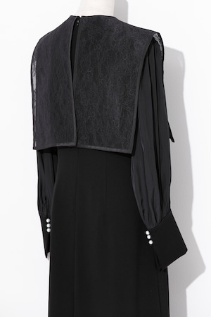 Pearl Lace BoxCollar Combi Dress BLACK