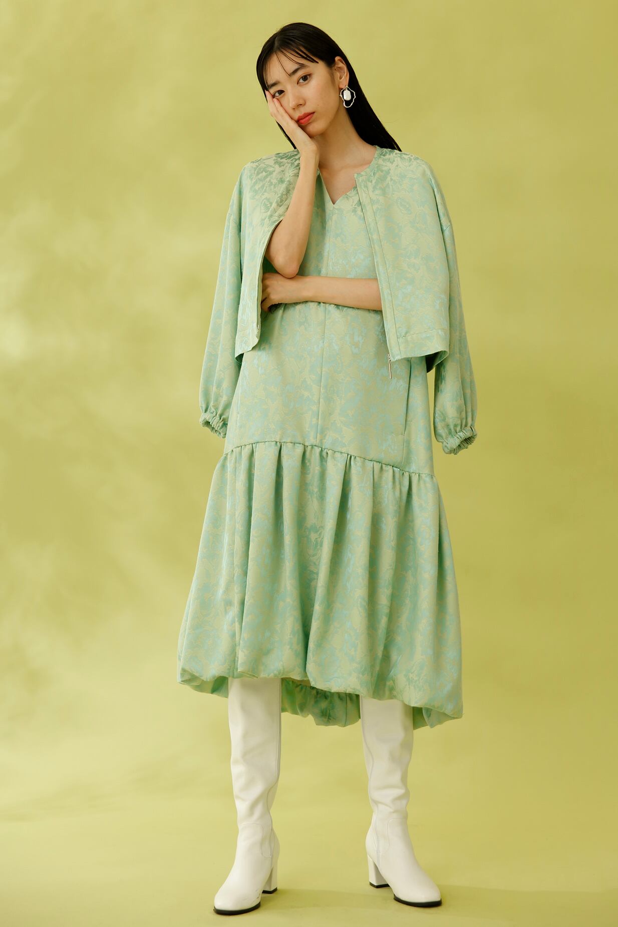 Swaying Flower Jacquard Blouson GREEN
