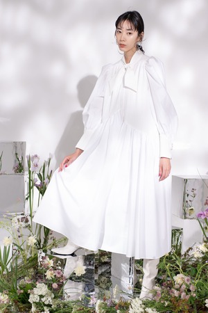 Bumpy Ribbon Tail Dress WHITE