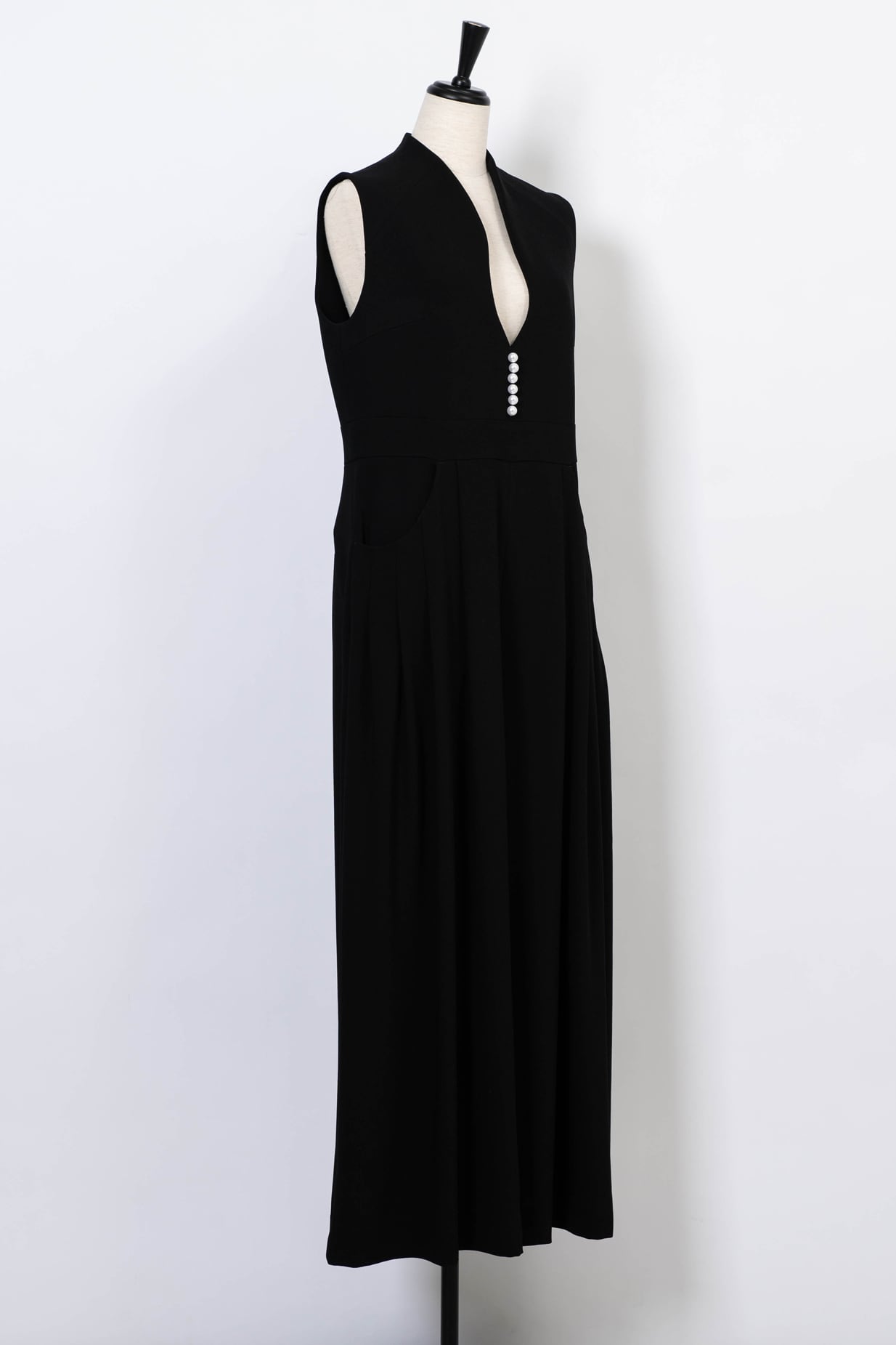 フロントにあしらったパールが優雅でクラシックな雰囲気を醸し出すオールインワン。