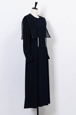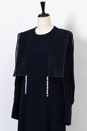Pearl Lace BoxCollar Combi Dress DARK NAVY