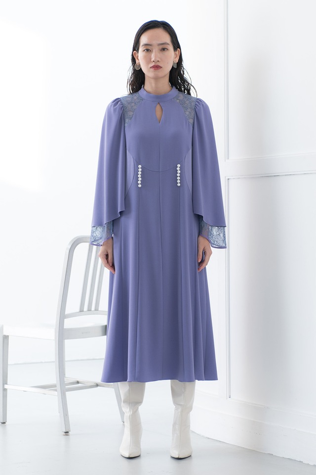 肩にあしらった長めのリボンが品良く映えるフェミニンなドレス。
