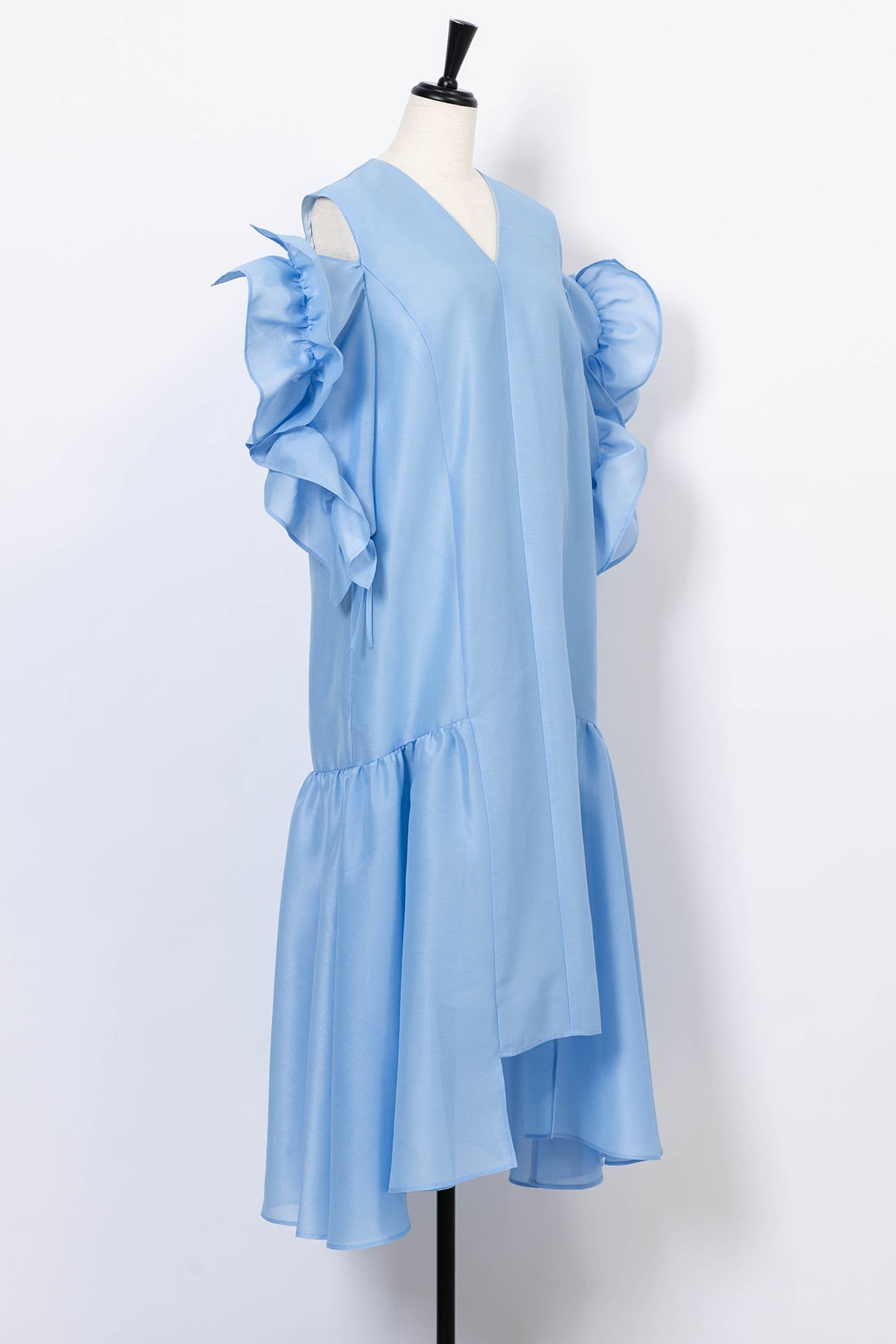 程よい透け感のハリのあるスパンオーガンジーで仕立てたドレス。