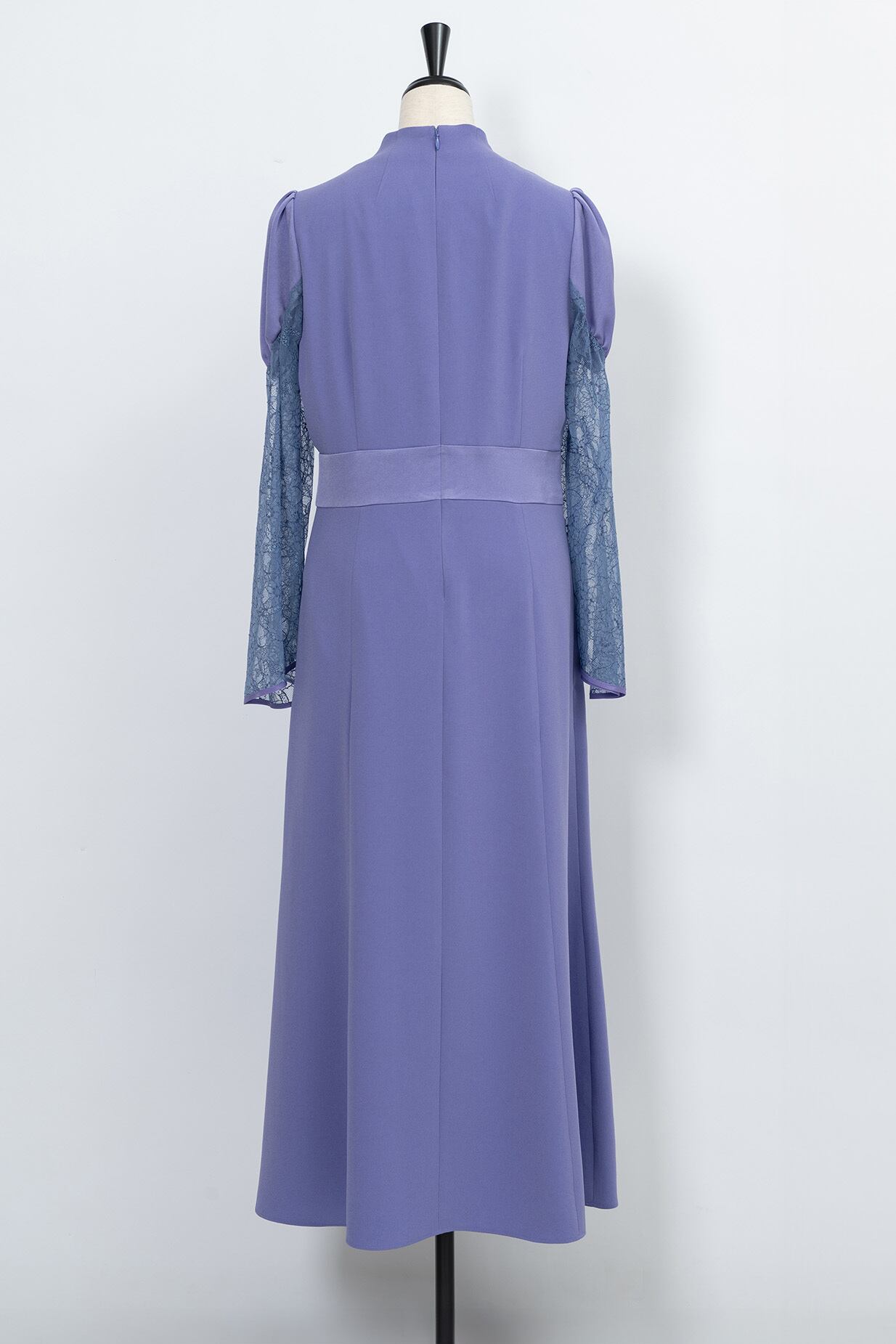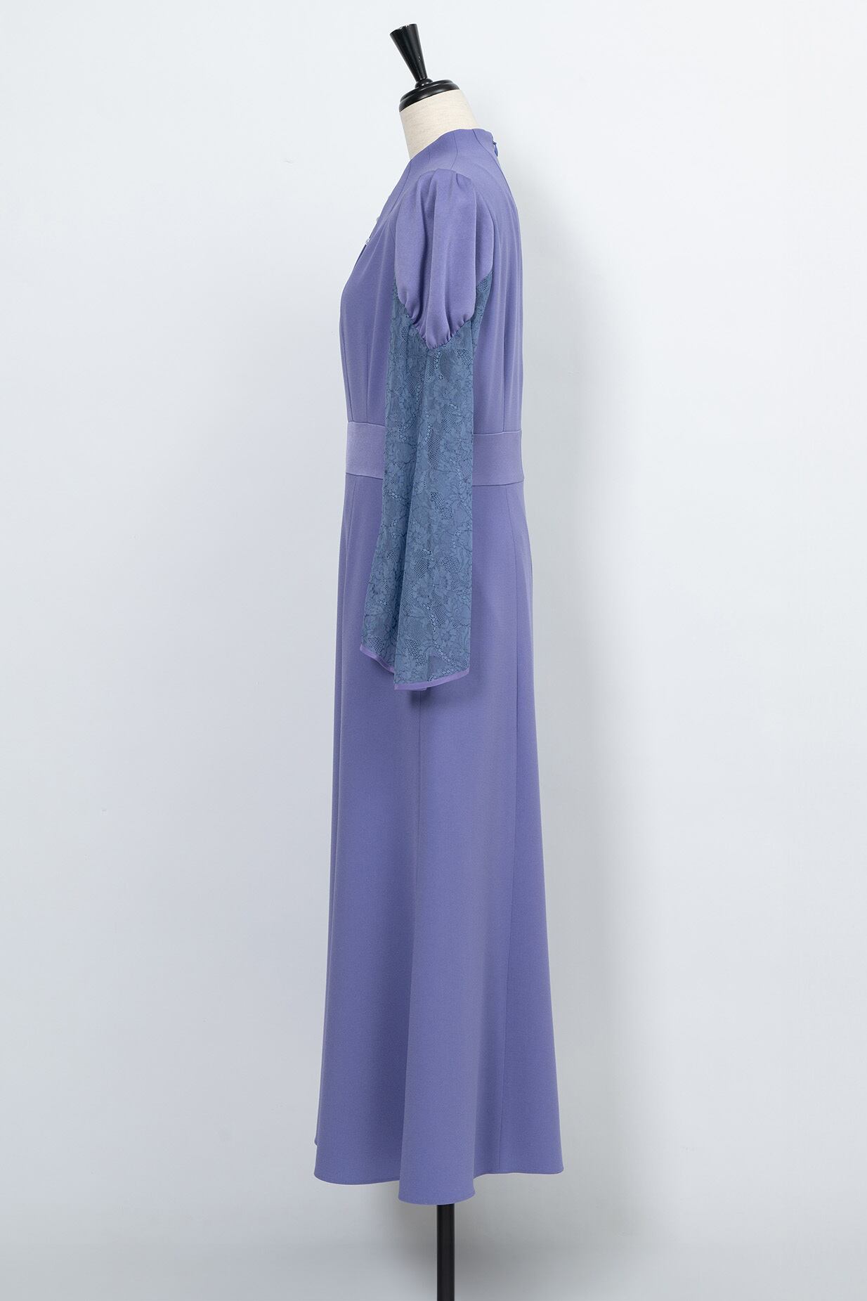 袖には繊細なリバーレースの切替えを施し、袖口に向かって広がるベルシルエットに仕上げました。