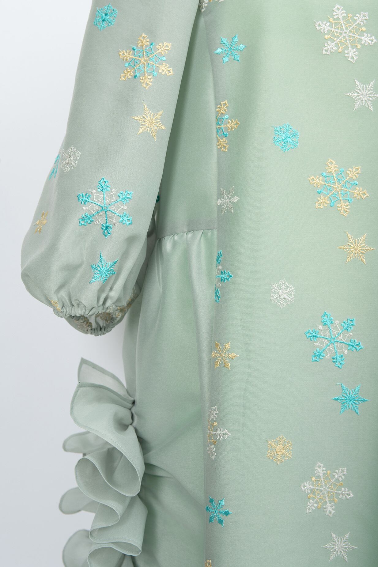 大きさや種類が異なる4種類の雪の結晶を描いたArobeオリジナルの刺繍。