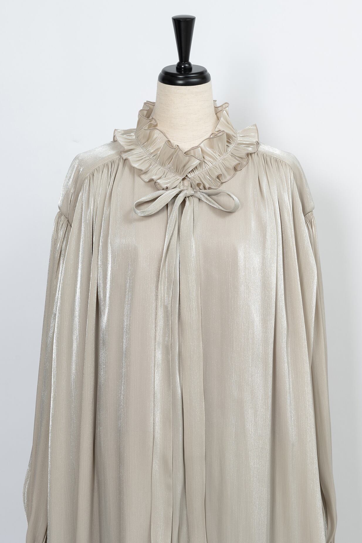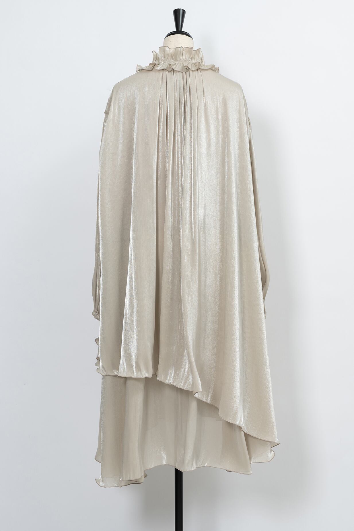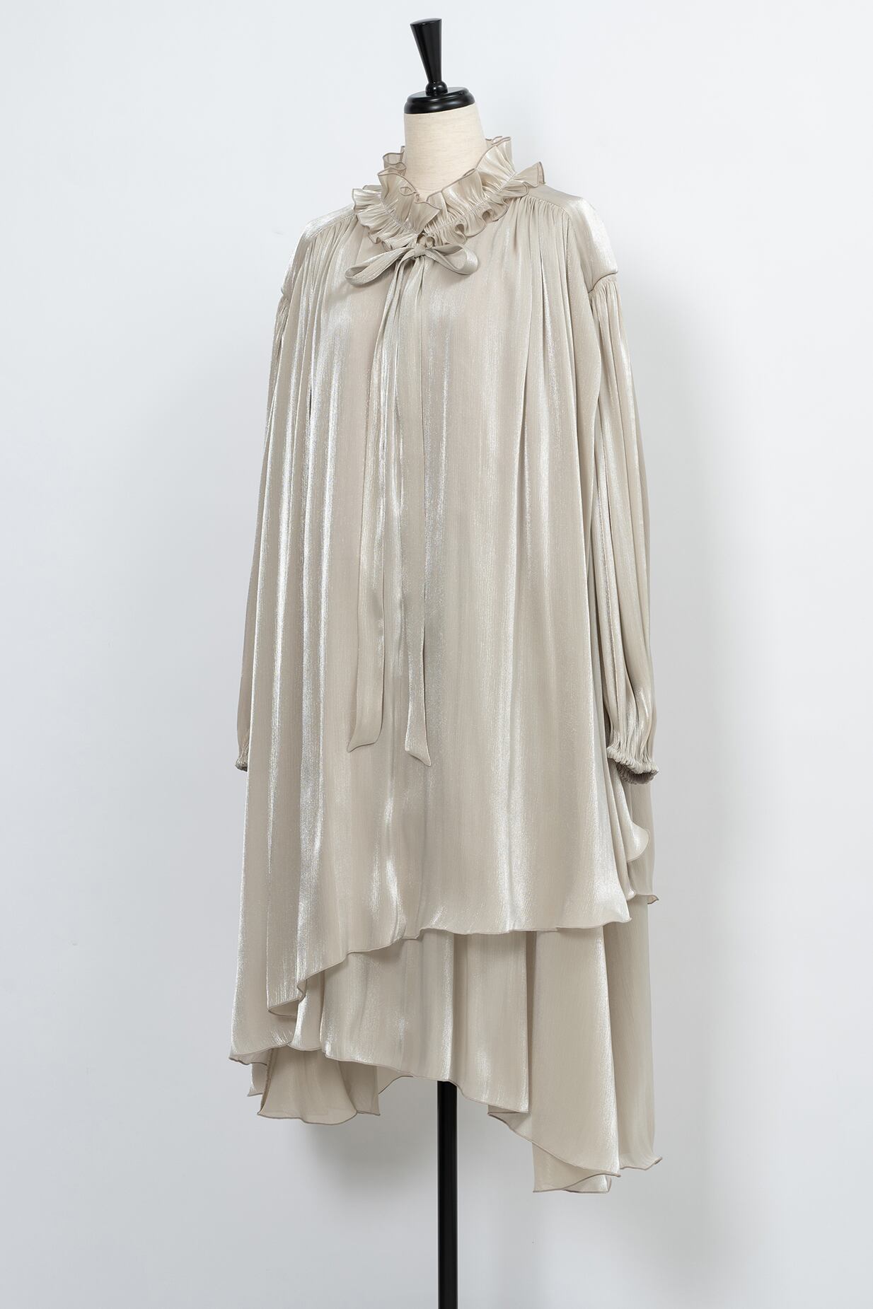 オーロラのような光沢感のある表情が美しい楊柳サテンを使用したドレス。