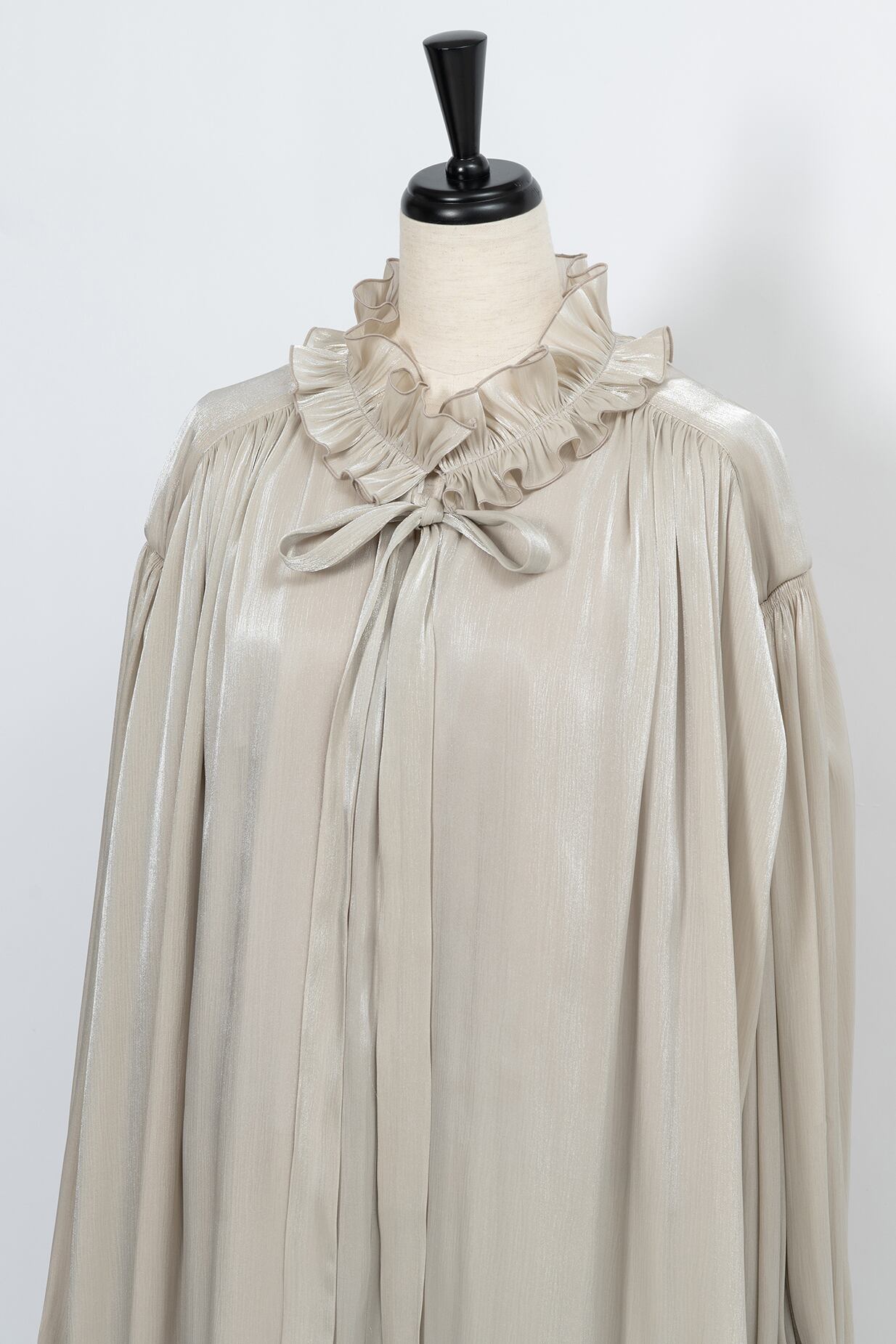 襟元のフリルデザインは顔まわりに華やかさと愛らしさをプラス。
