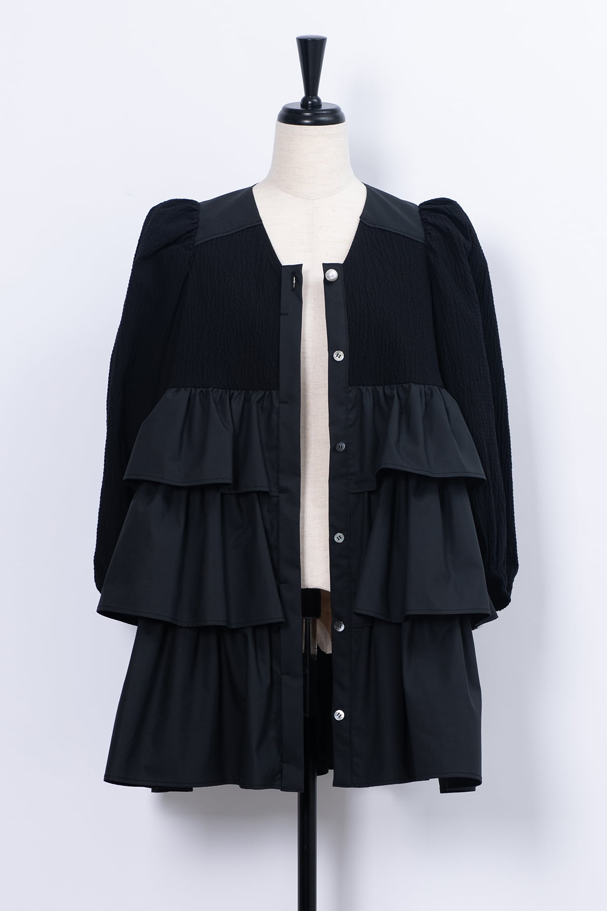 Bumpy Tired Frilly Blouse BLACK