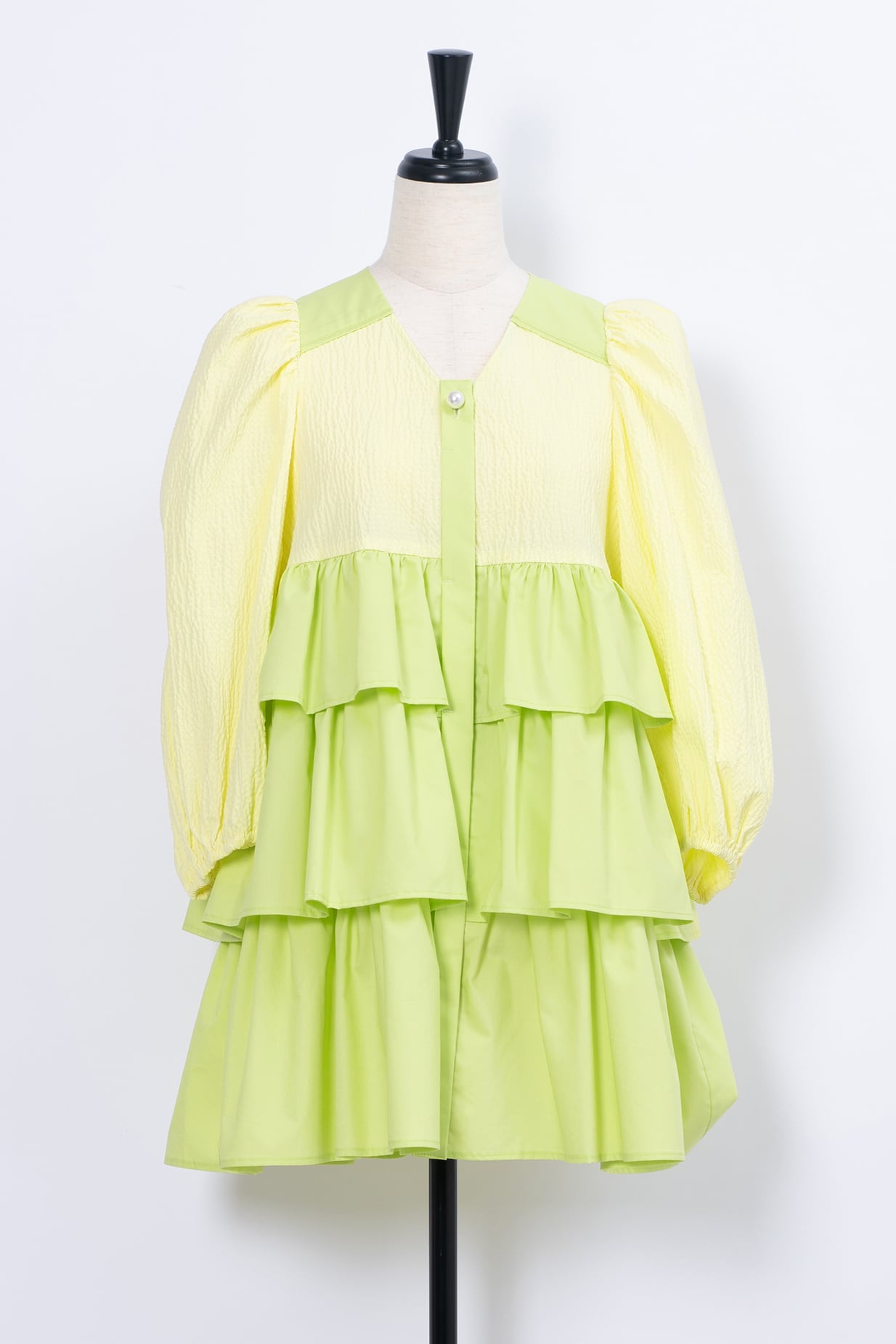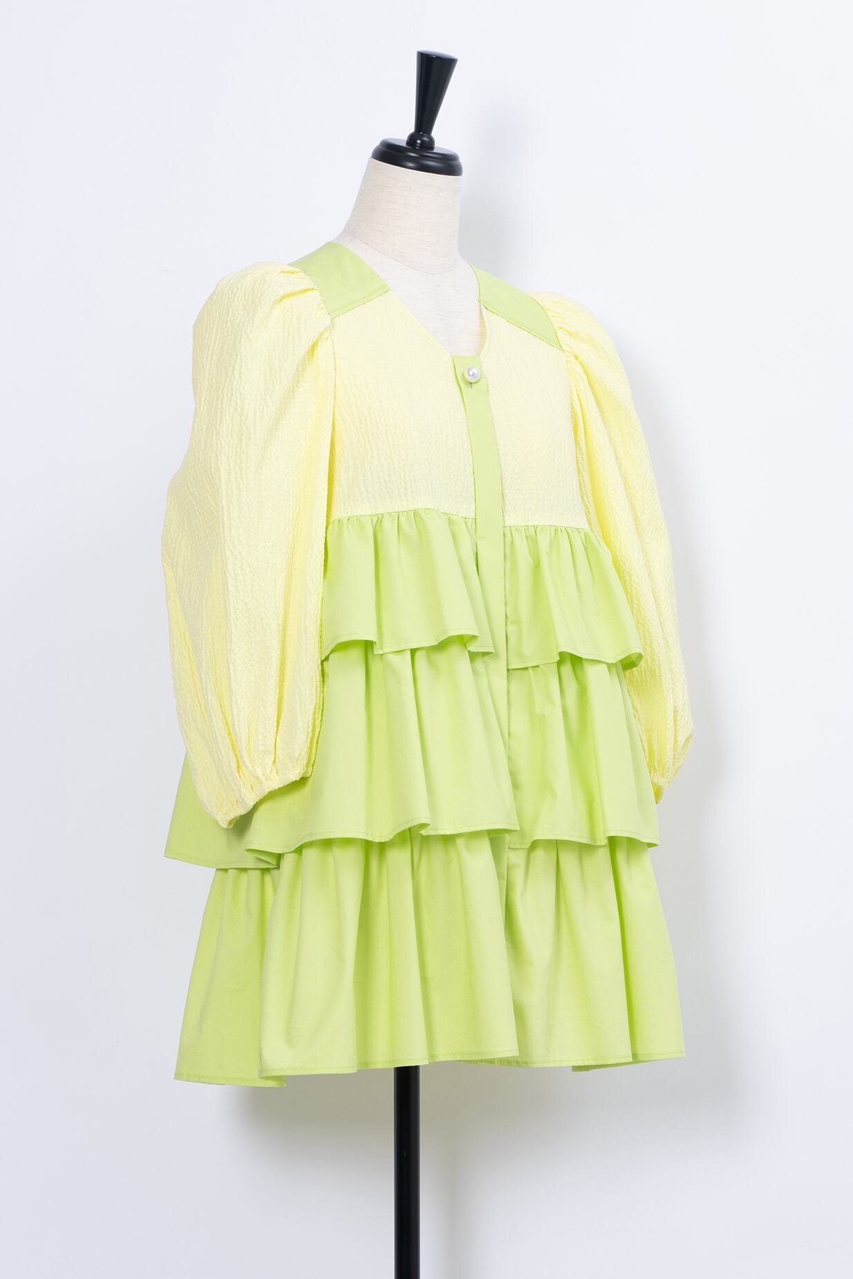 程よいボリューム感の3段フリルは体をふんわり包み込みシルエットを美しく演出。
