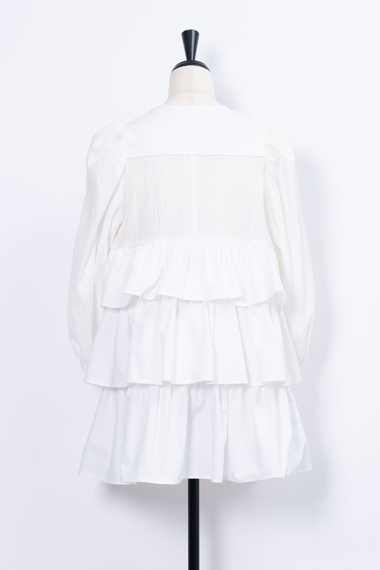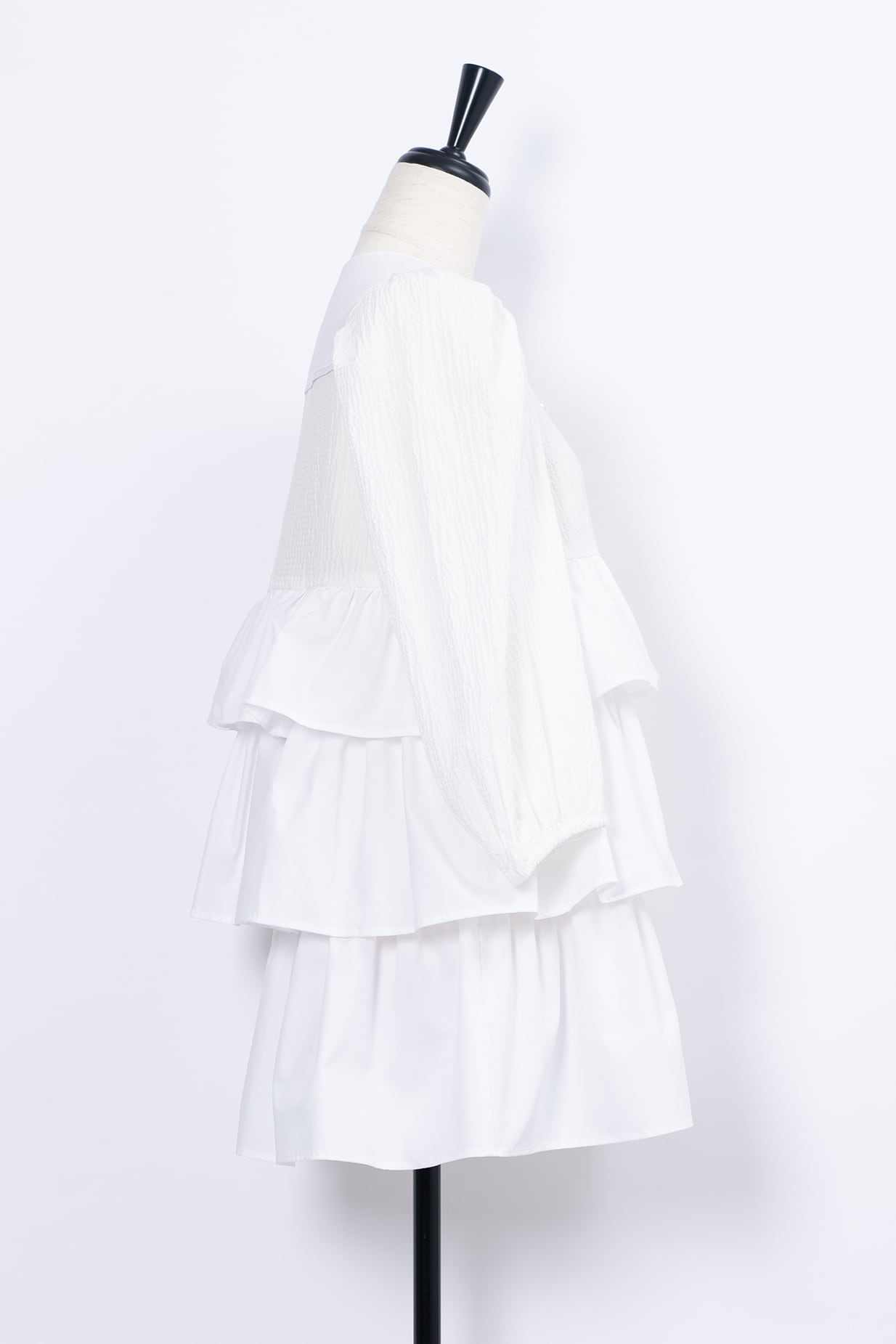 程よいボリューム感の3段フリルは体をふんわり包み込みシルエットを美しく演出。