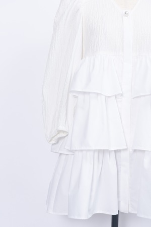 Bumpy Tired Frilly Blouse WHITE