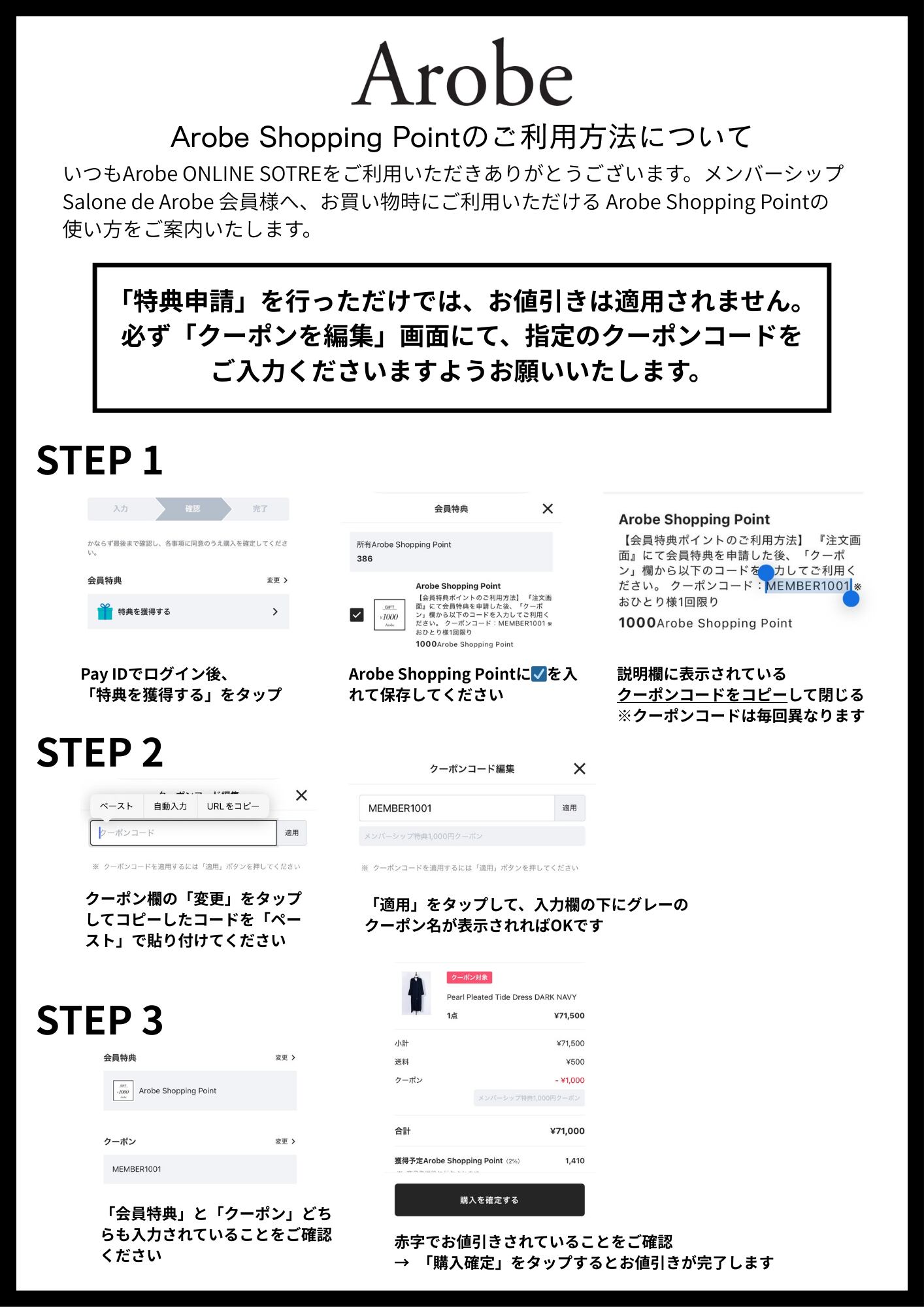 また、『Salon de Arobe』会員様限定で、シーズンの先取りのご案内や特別イベント、先行販売などの特典もご用意しております。